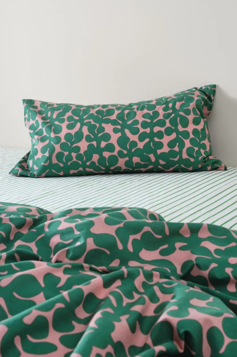 Örngott designat av Maria Carlberg. Ett livfullt, mönstrat örngott med retroinspirerat mönster för ett drömlikt sovrum. GOTS-certifierad, färgrik glädje.