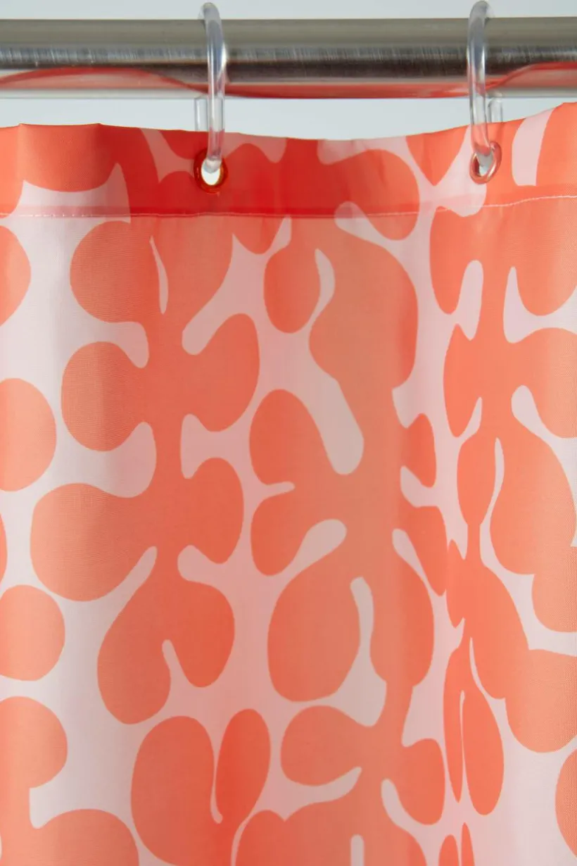Duschdraperi av polyester med läckert retromönster som designats av Maria Carlberg. KNOTA är digitaltryckt vilket ger ett distinkt mönster med klara färger. Tyget har vattenavvisande beläggning. Upptill har duschdraperiet 12 metallöljetter i matchande färg. Ringar till upphängningen ingår ej.