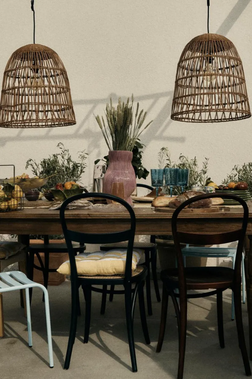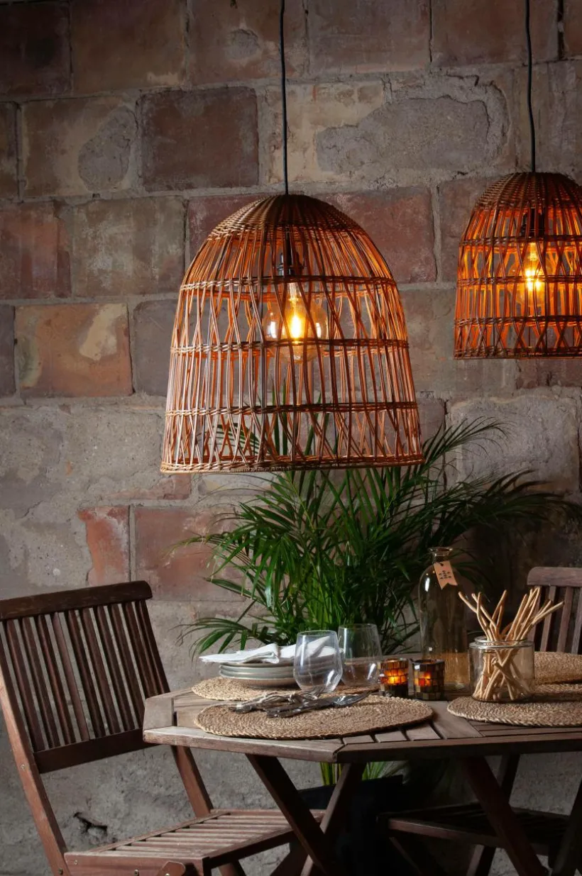 Lampskärm i brun konstrotting för utomhusbruk. Sladd med sockel ingår ej. Köp till TRÅDEN sladd för utomhusbruk, med E27 sockel.