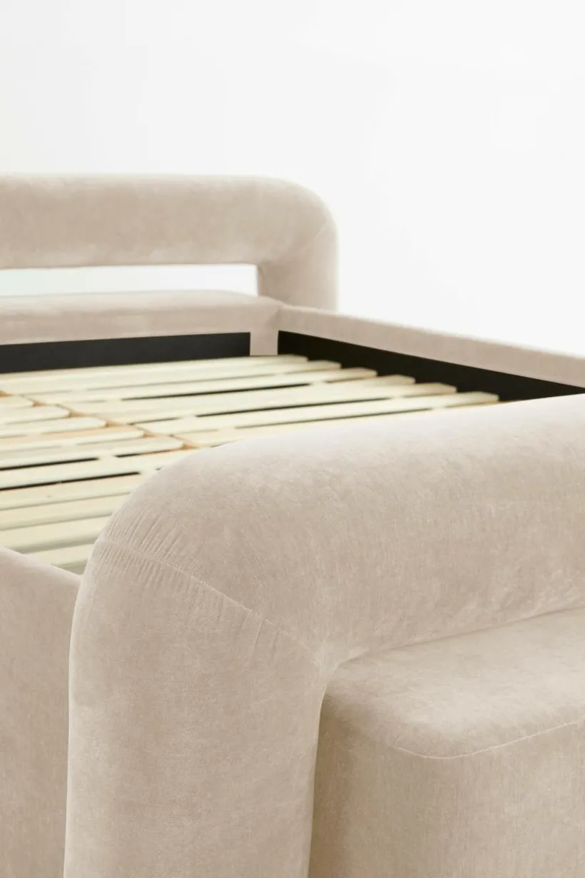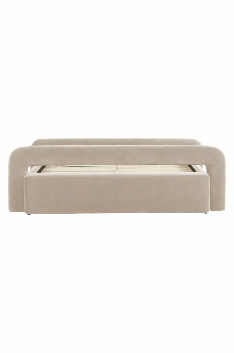 Inbjudande sängram med mjukstoppade gavlar och lyxig framtoning. Även sidorna är mjukstoppade för maximal bekvämlighet. Sängramen är klädd med mjukt, enfärgat chenilletyg av polyester, hälften av innehållet är återvunnet material. Stommen är tillverkad av FSC-certifierad furu och plywood. Sängramen har ribbotten av plywood och du kompletterar med madrasser eller resårmadrasser beroende på vilket du föredrar. Madrass/resårmadrass ingår ej. Viss montering krävs. Monteringsanvisning medföljer.