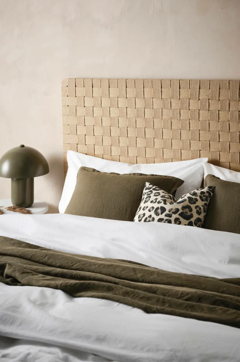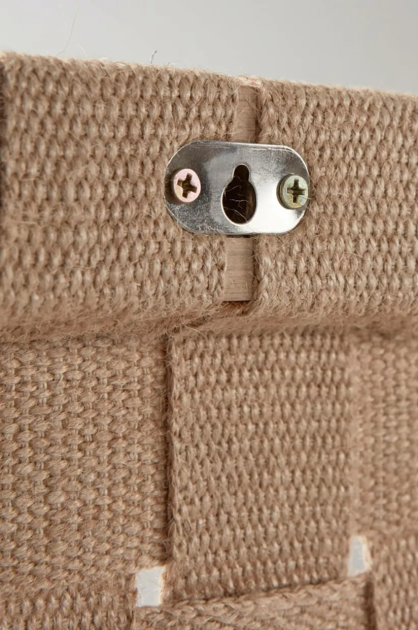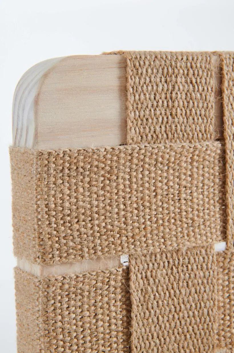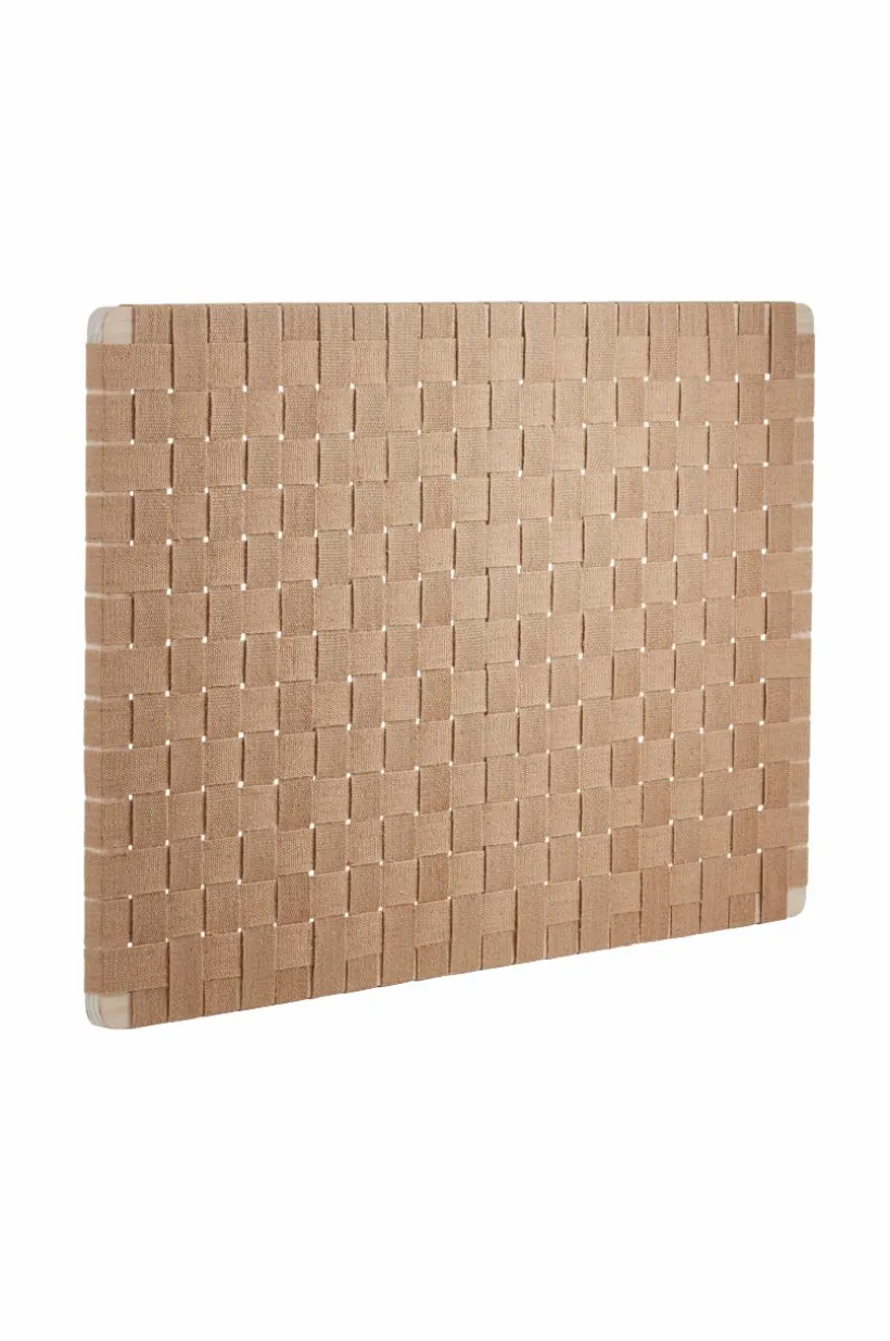 Rama in din säng med dekorativt flätad sängram i lugna naturfärger. KÖPENHAMN sängavel är en fristående gavel i i furu med nät av jute som hängs direkt på väggen.