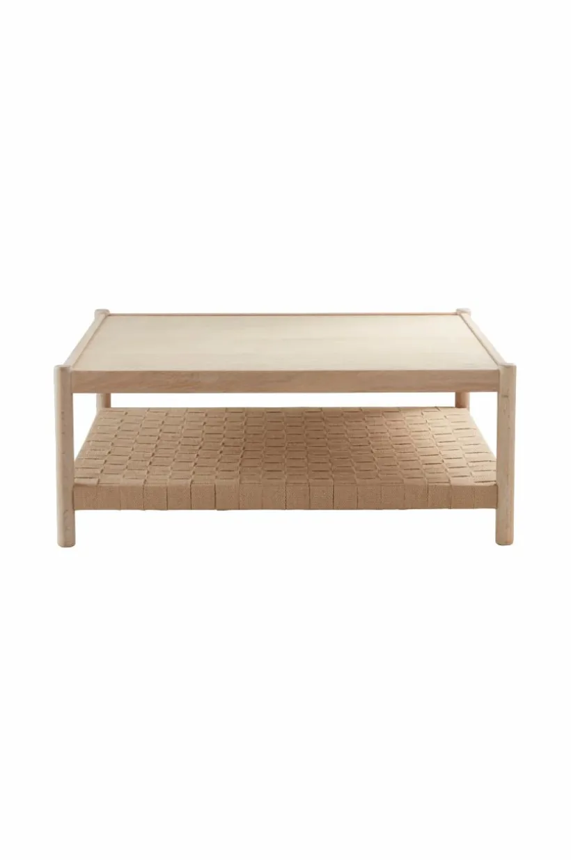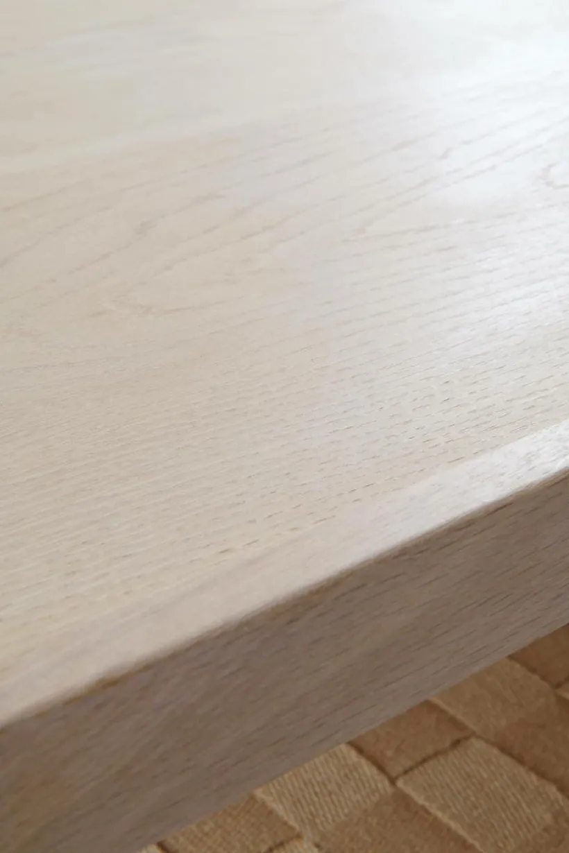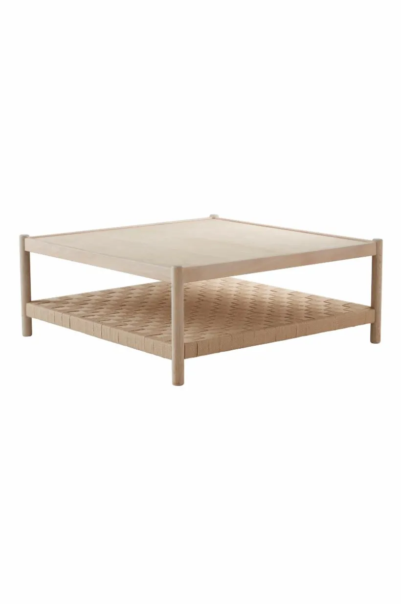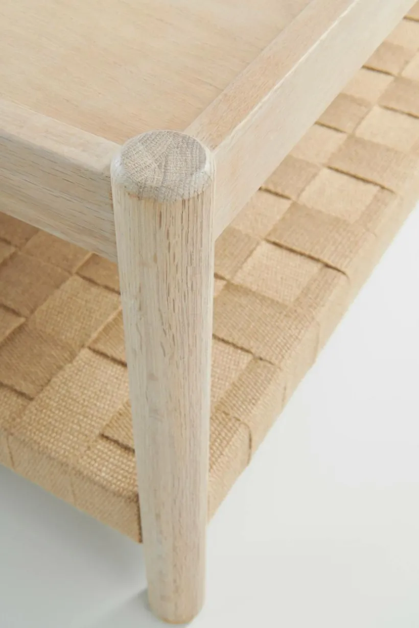 Soffbord av ek med vitsåpad finish. Bordsskivan är av MDF med ekfaner och kanten runt om är av massiv ek. Benen är av massiv ek. Bordets underdel är av flätad jute som blir en snygg detalj som sticker ut. Ramen runt om är även den i massiv ek. De snyggt formade benen förstärker den skandinaviska känslan. Viss montering krävs, monteringsanvisningar medföljer.