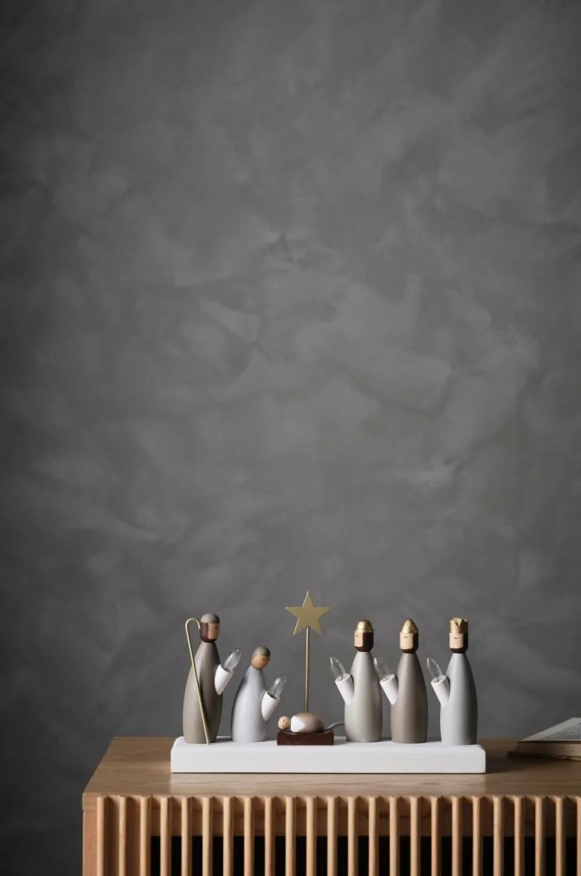 Träljusstake med de tre vise männen, Maria, Josef och Jesusbarnet som ligger på en bädd. Elljusstaken har en målad guldstav med en stjärna i metall och 5 ljuskällor. Ljusskällor ingår. Placera på en skänk eller i ett fönster för att sprida en härlig julstämning i ditt hem. Vit sladd, sladdlängd 1,8 m.