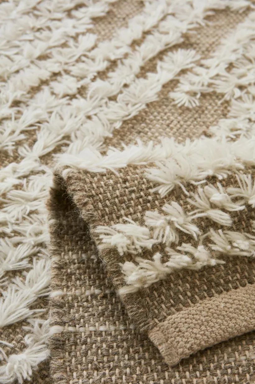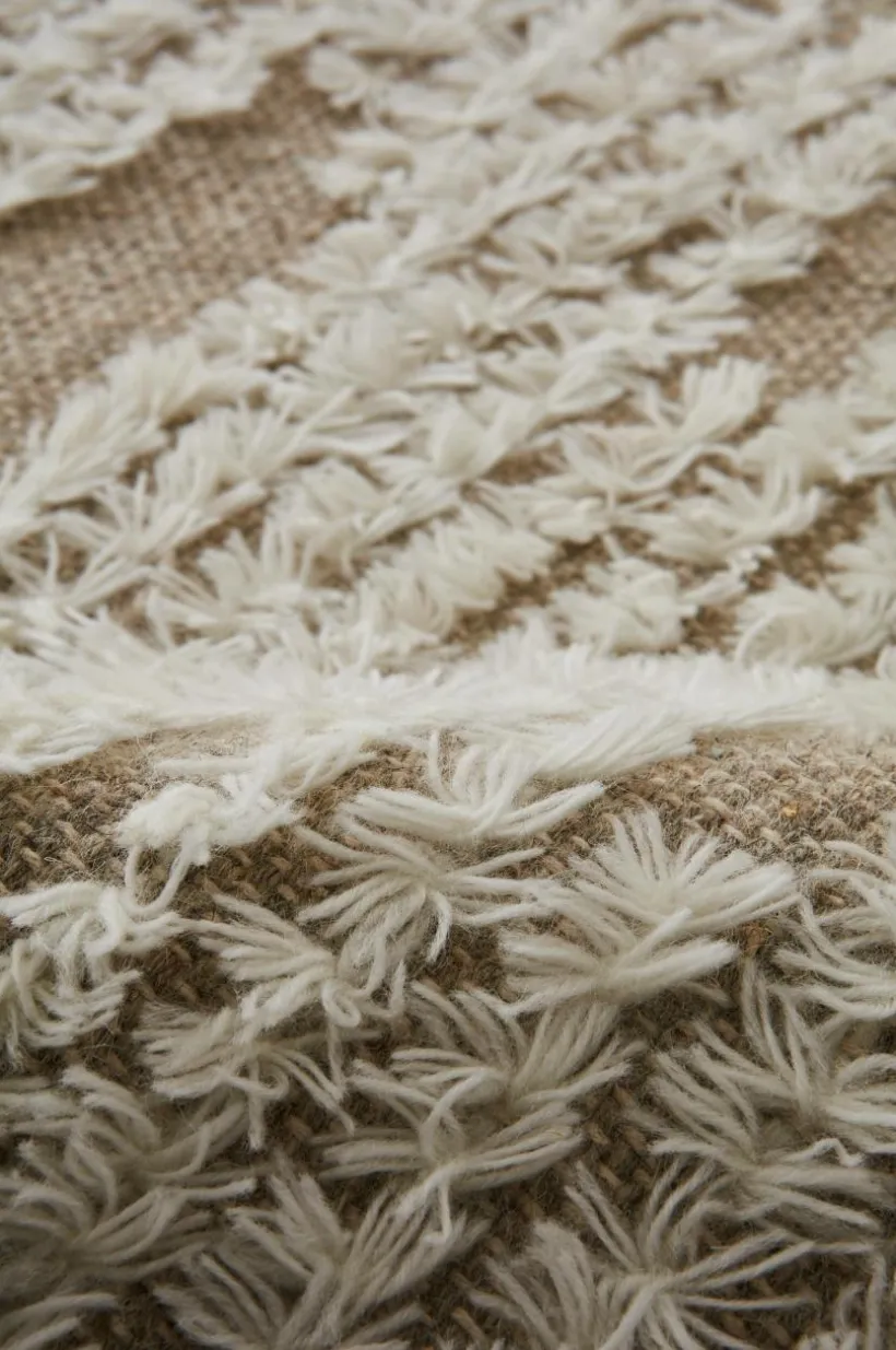Handvävd matta i behaglig kvalitet av ull och bomull. Mattan har snyggt mönster av knuten lugg på den vävda botten. Ull är ett fint naturmaterial som sprider skön värme och har smutsavvisande egenskaper. En handgjord matta är ett fint hantverk och varje matta är unik. Lugghöjd 1-1,2 cm. Tjocklek 0,4-0,5 cm (utan lugg). 1000-1200 g/m².