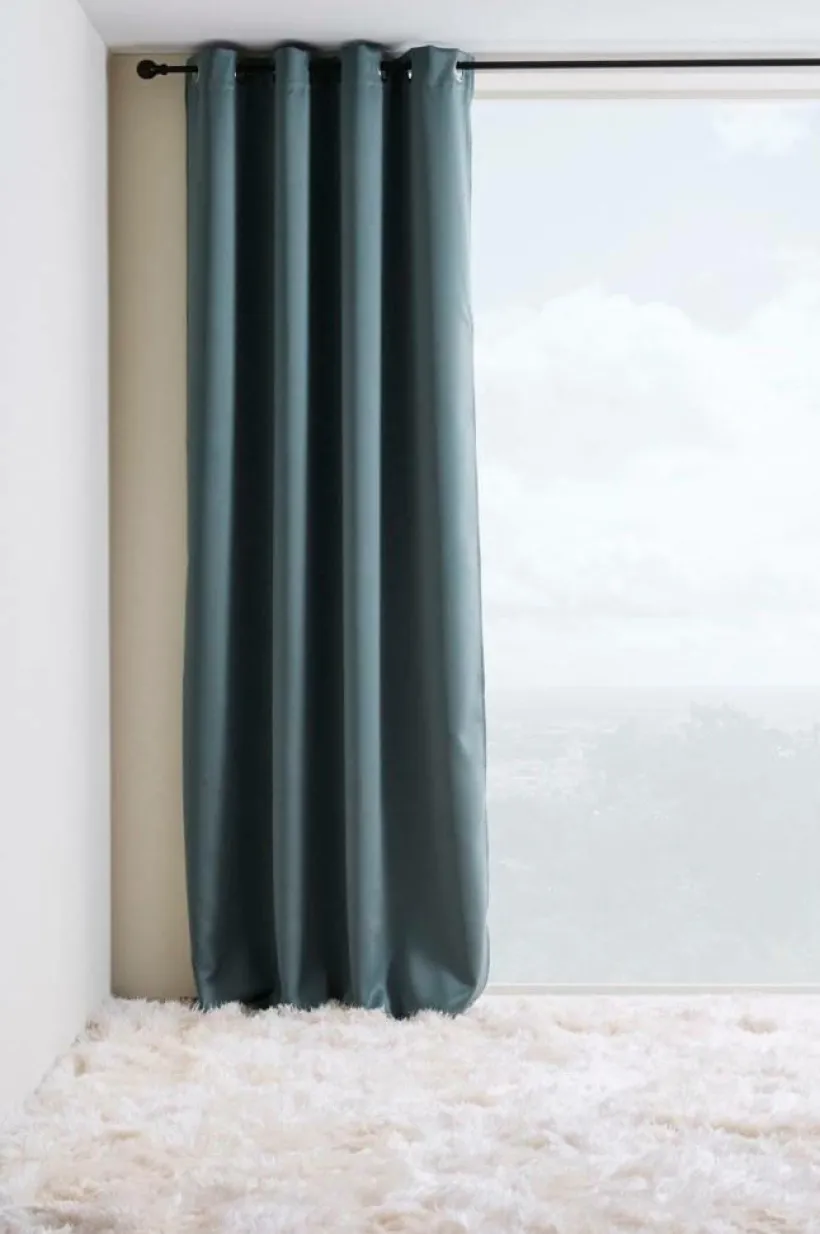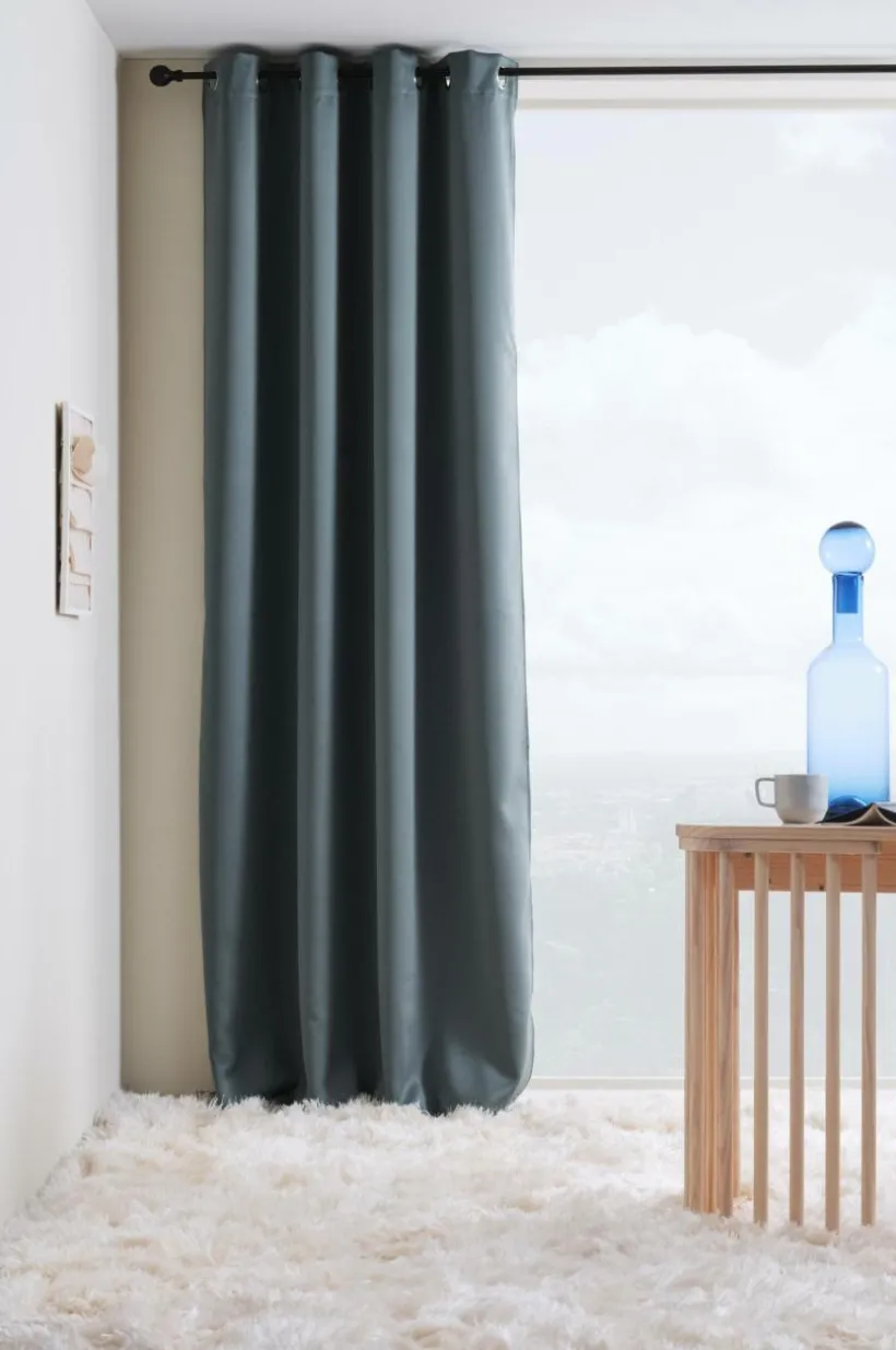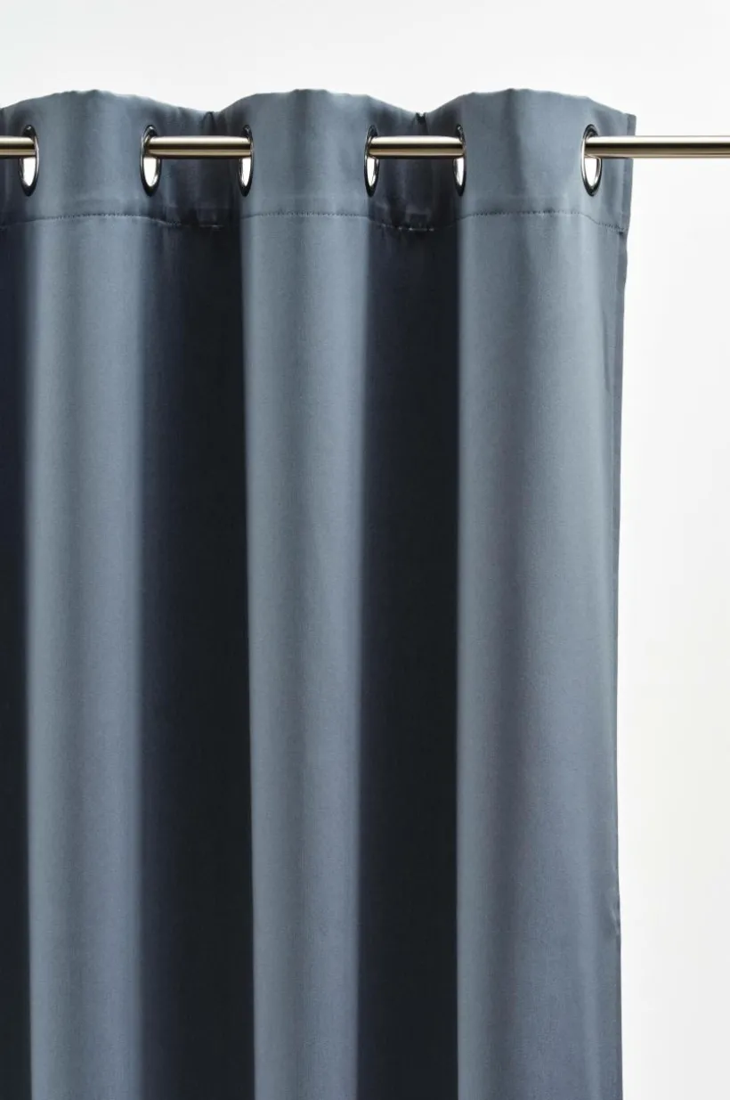 En öljettlängd för mörkläggning, tillverkad av polyester varav 60% kommer från återvunnet material. KYLIE är lika fin på baksidan som på framsidan. Gardinen är tätvävd så att beläggning på baksidan inte behövs. Var uppmärksam på att de olika färgerna varierar i mörkläggning och mörka färger är mörkläggande medan de ljusa är mer ljusdämpande. Åtta öljetter per längd som enkelt träs på en gardinstång. Gramvikt 240 g/m².