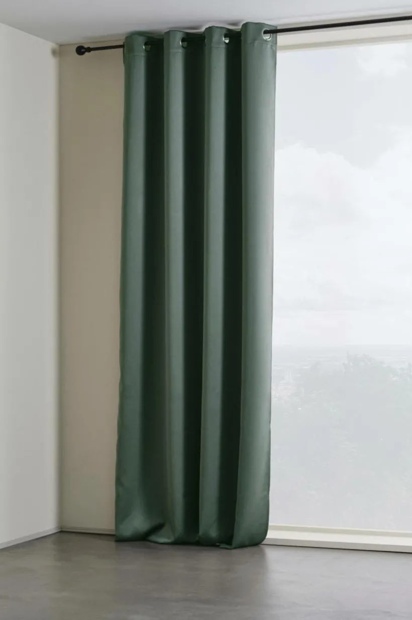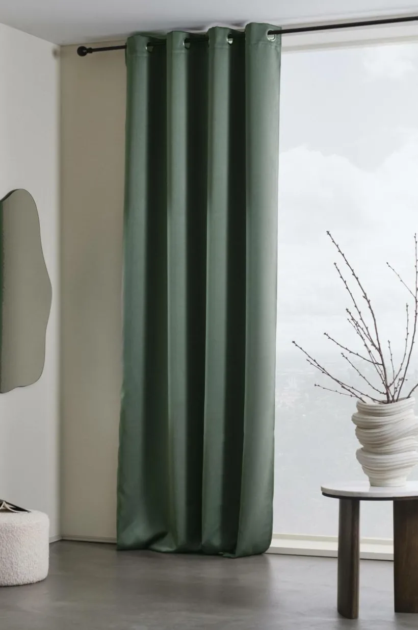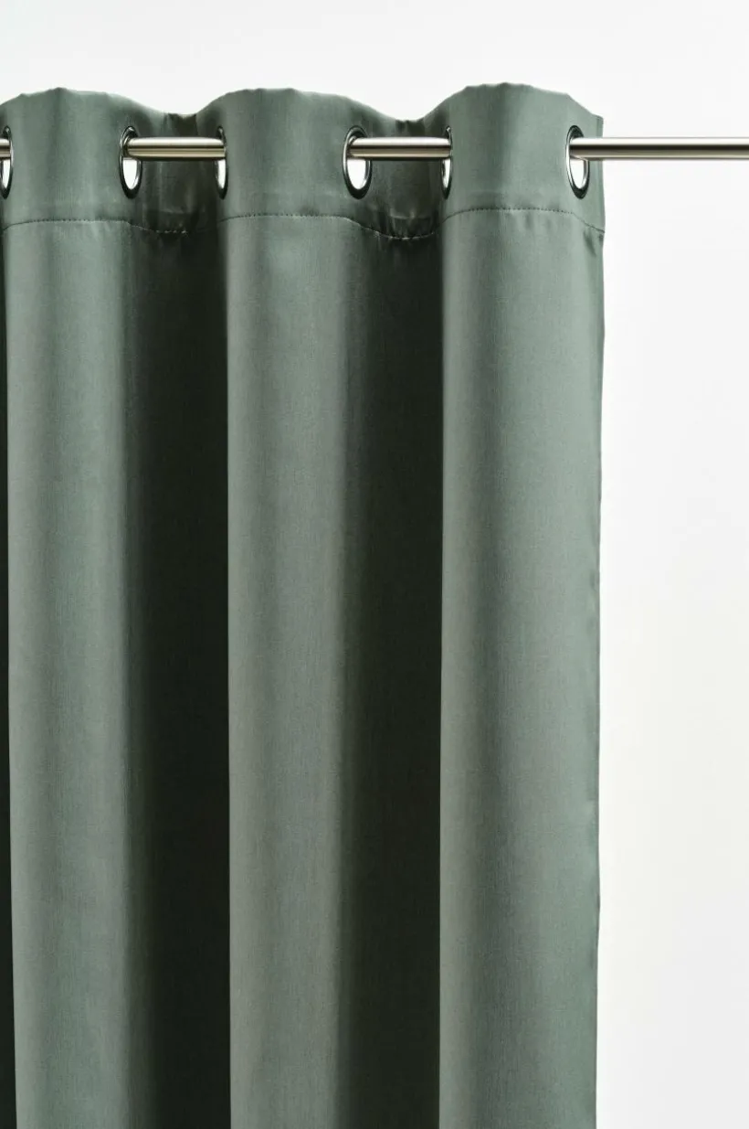 En öljettlängd för mörkläggning, tillverkad av polyester varav 60% kommer från återvunnet material. KYLIE är lika fin på baksidan som på framsidan. Gardinen är tätvävd så att beläggning på baksidan inte behövs. Var uppmärksam på att de olika färgerna varierar i mörkläggning och mörka färger är mörkläggande medan de ljusa är mer ljusdämpande. Åtta öljetter per längd som enkelt träs på en gardinstång. Gramvikt 240 g/m².