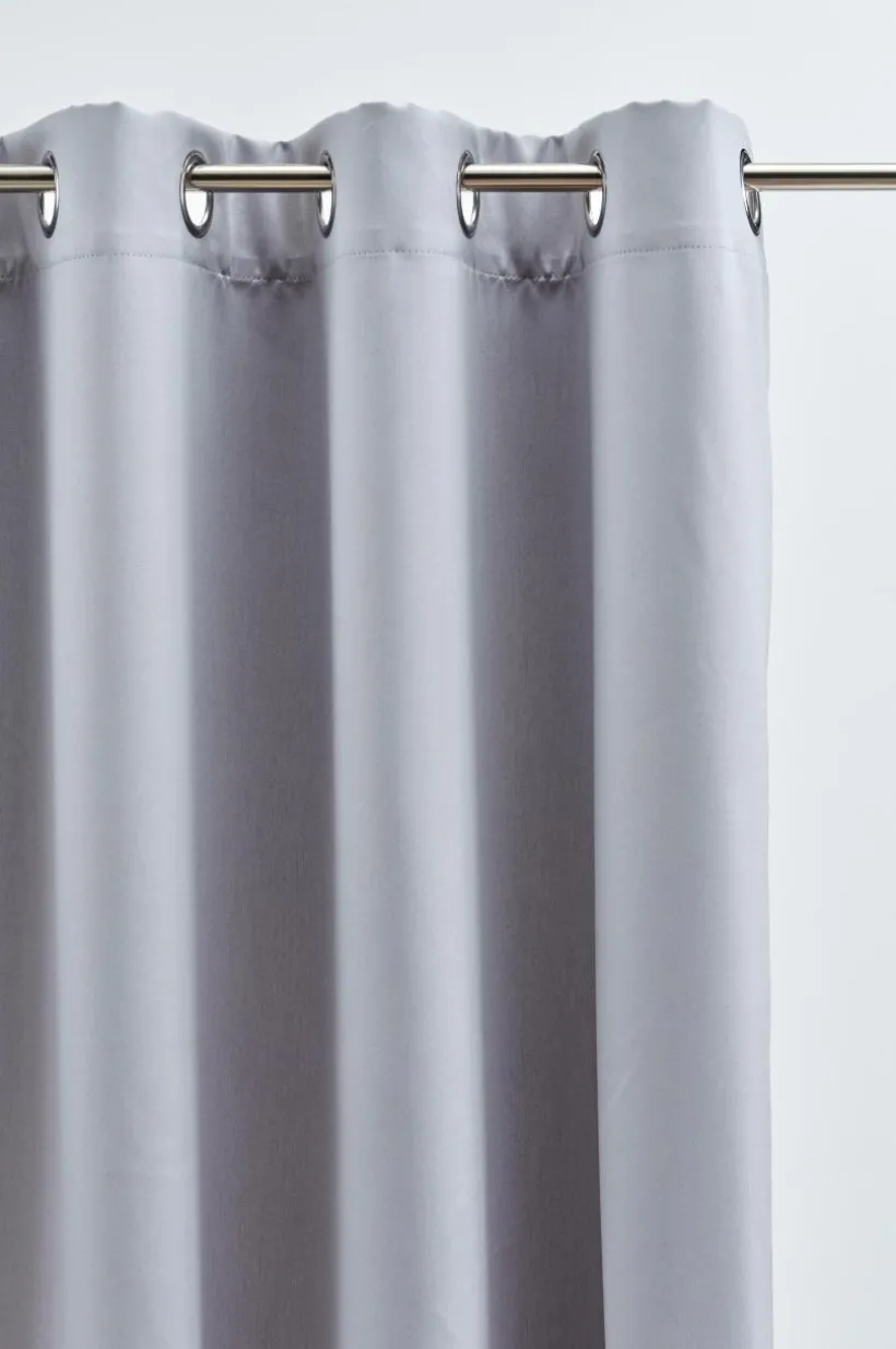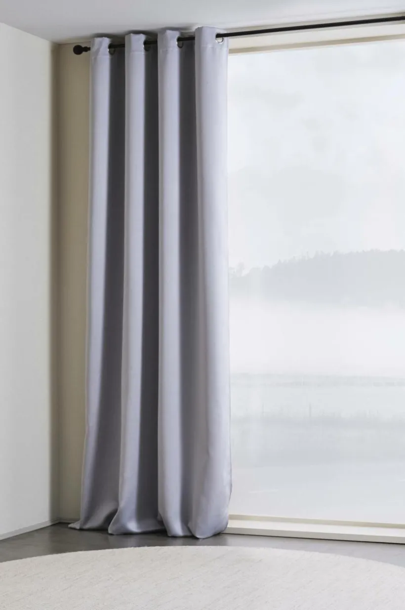En öljettlängd för mörkläggning, tillverkad av polyester varav 60% kommer från återvunnet material. KYLIE är lika fin på baksidan som på framsidan. Gardinen är tätvävd så att beläggning på baksidan inte behövs. Var uppmärksam på att de olika färgerna varierar i mörkläggning och mörka färger är mörkläggande medan de ljusa är mer ljusdämpande. Åtta öljetter per längd som enkelt träs på en gardinstång. Gramvikt 240 g/m².