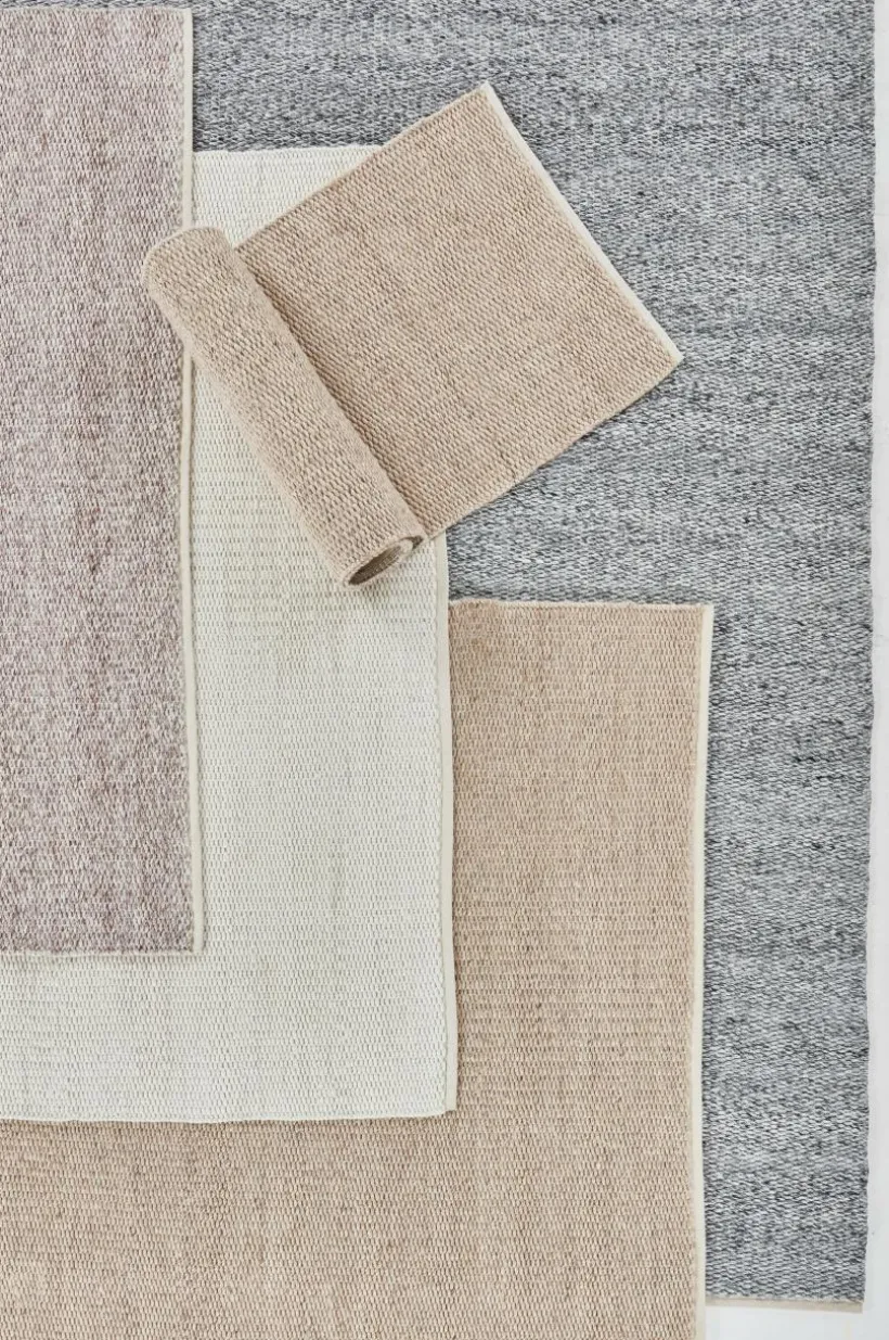Slätvävd matta som är tillverkad av återvunnen polyester. Vävtekniken ger fin struktur och melerad effekt. Mattan är behaglig att gå på och har alla egenskaper som en inomhusmatta ska ha, men kan även användas utomhus. Den tål att bli blöt utan att mögla, en fantastisk fördel hos materialet. Franslängd 5 cm. Tjocklek 0,7 cm. 2300 g/m².