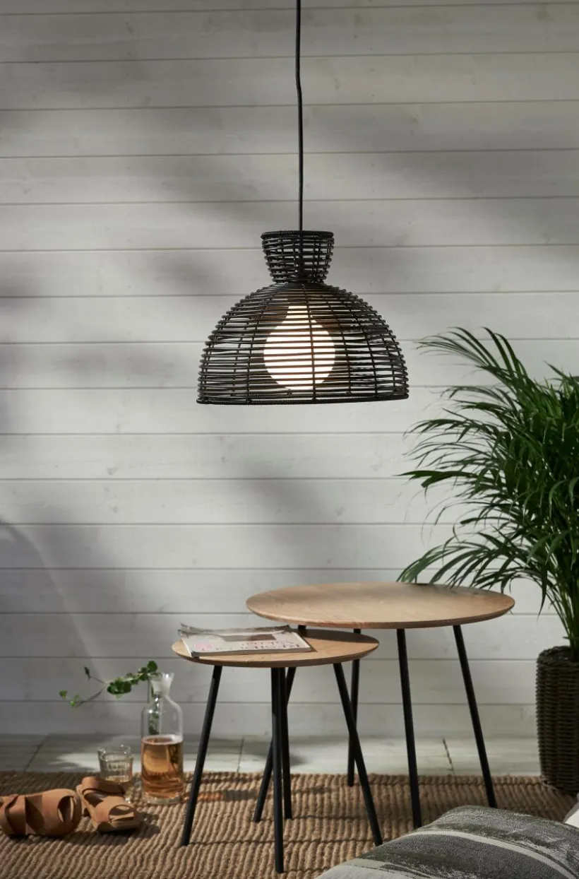 Lampskärm i konstrotting för utomhusbruk. Bredd 37 cm och höjd 29,5 cm. Mixa och matcha med utomhusupphäng och ljuskällor, ingår ej. Passar lämpligast till E27 sockel.