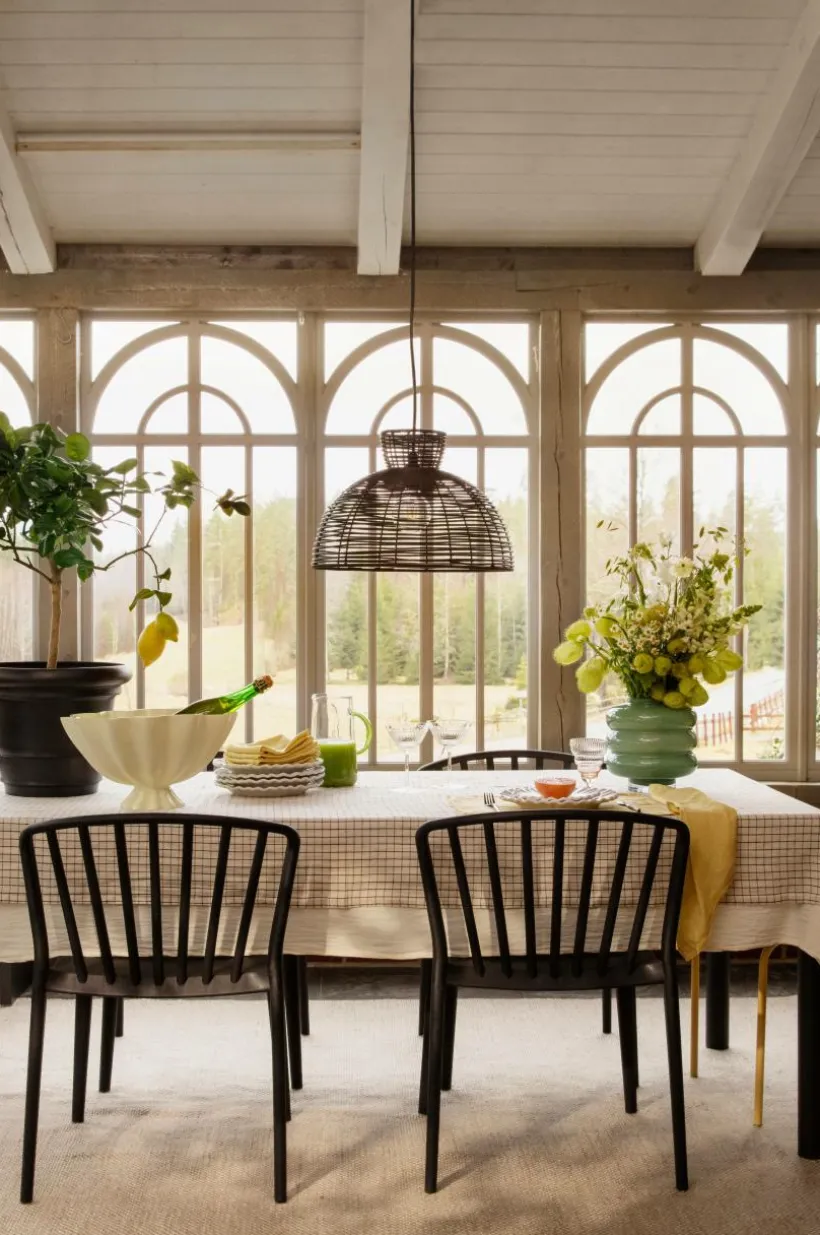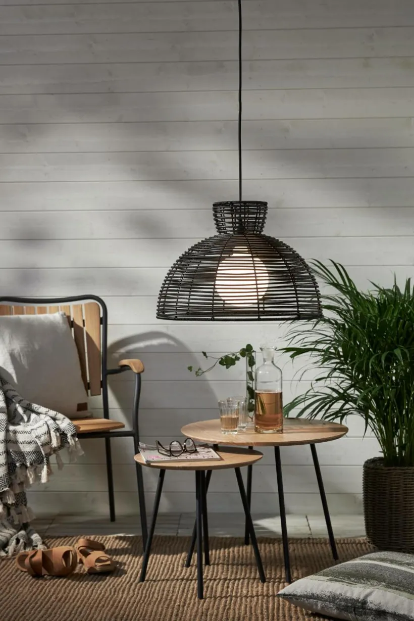Lampskärm i konstrotting för utomhusbruk. Bredd 47 cm och höjd 32 cm. Mixa och matcha med utomhusupphäng och ljuskällor, ingår ej. Passar lämpligast till E27 sockel.