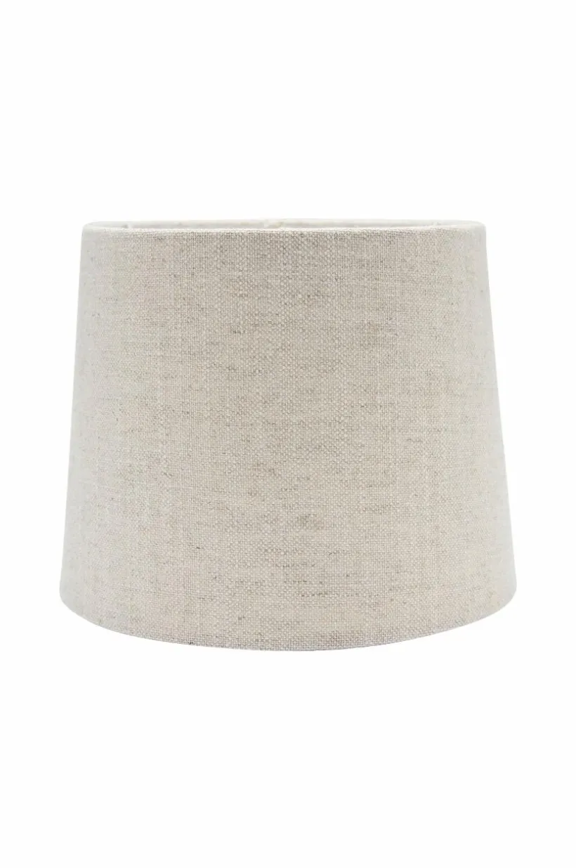 Lampskärm Sofia i ett tyg med linnestruktur och matt yta. Lampskärmen är rund med ljus insida och försedd med E27-ringfäste som sitter ca 3.5 cm från nederkant på skärmen. Lampskärmen är lätt att matcha med olika lampfötter. Höjd 18 cm, bredd nertill 25 cm och bredd upptill 22 cm.
