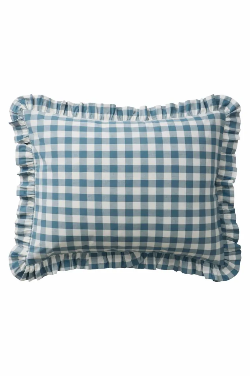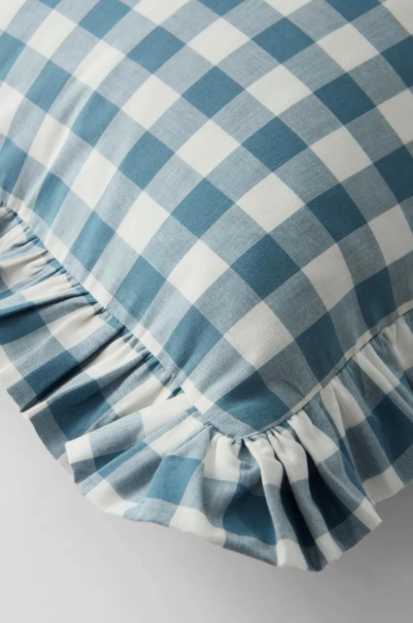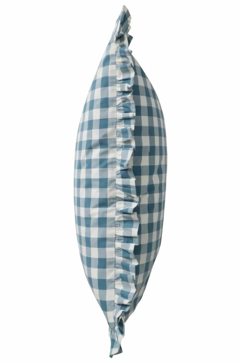 Kuddfodralet LAUREN ger en charmig touch till ditt sovrum med sitt gingham-mönster och eleganta volangdetaljer. Det är garnfärgat för livfulla färger och passar perfekt ihop med LAUREN-familjen av koordinerande föremål, vilket skapar en personlig och elegant hematmosfär.
