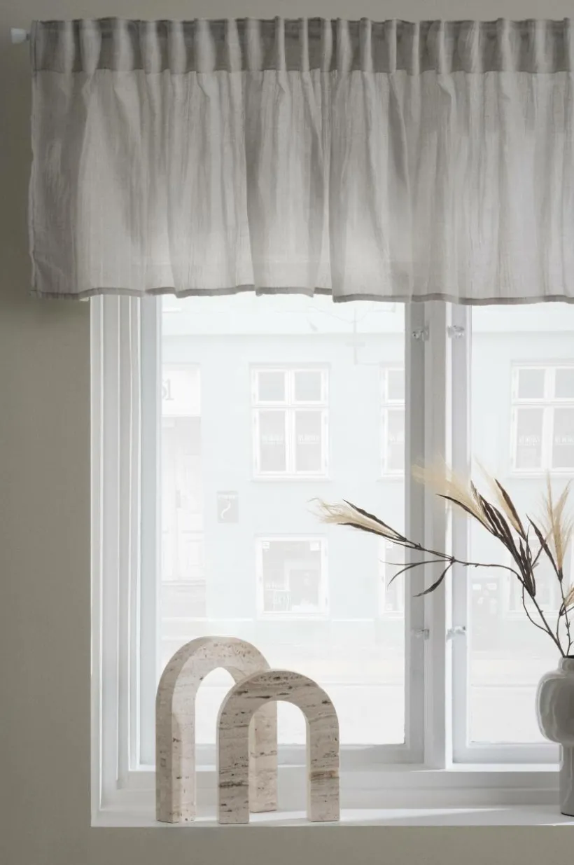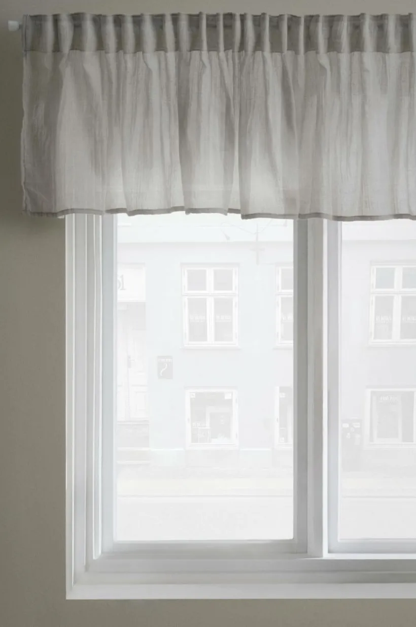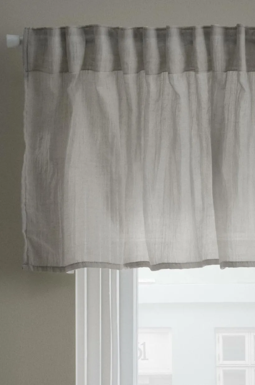 Gardinkappa i skir och luftig kvalité av polyester/bomull som faller lätt. Kappan har påsytt multifunktionsband upptill och kan hängas upp med fingerkrokar, kanal samt dold hälla.