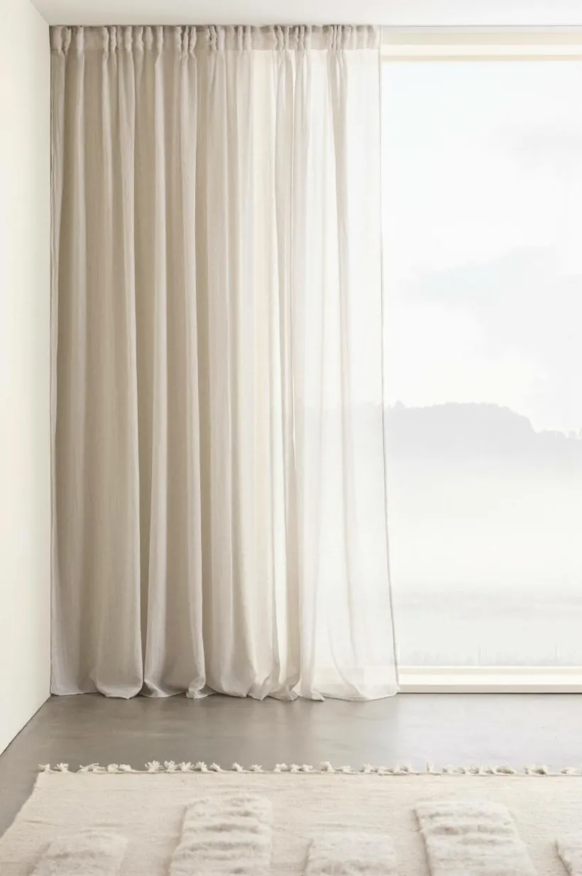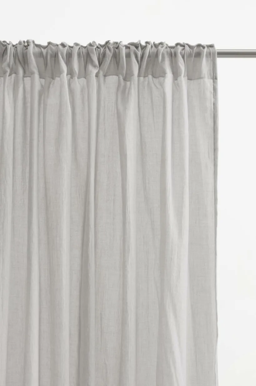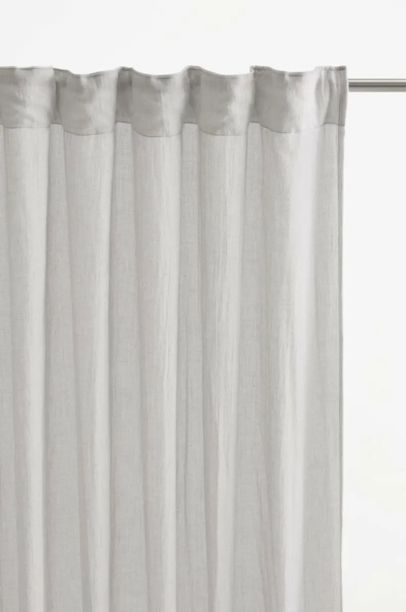 En extra bred gardinlängd i skir och luftig kvalité av polyester/bomull som faller lätt. Med påsytt multifunktionsband. Gardinen kan hängas upp med fingerkrokar, kanal samt dold hälla.