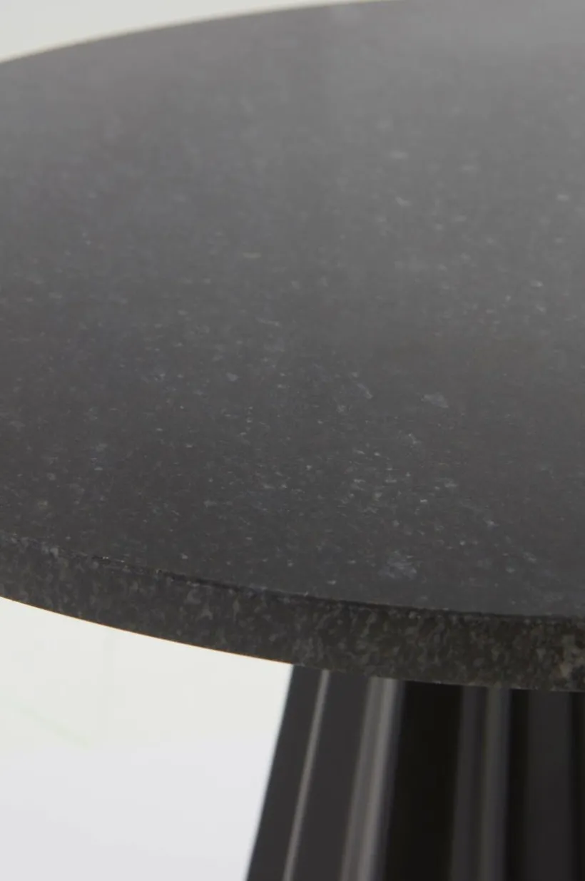 LEIRA har en rund fin, bordsskiva av granit och den konformade, räfflade foten är av järn med slät ytfinish. Bordsskivan av granit, som är en naturlig stenart, har melerad färg och fina variationer. Det svarta underredet är ihåligt och har tack vare det låg vikt. Viss montering krävs. Monteringsanvisning medföljer.