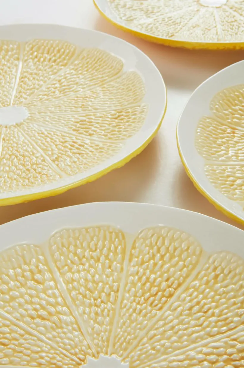 4-pack tallrikar av dolomitporslin med reliefmönster som förstärks av den fina glasyren i citrongul färg. De fräscha tallrikarna har fått både färg och form från den syrliga citronen. Dukningen blir ljuvlig med dessa somriga tallrikar.