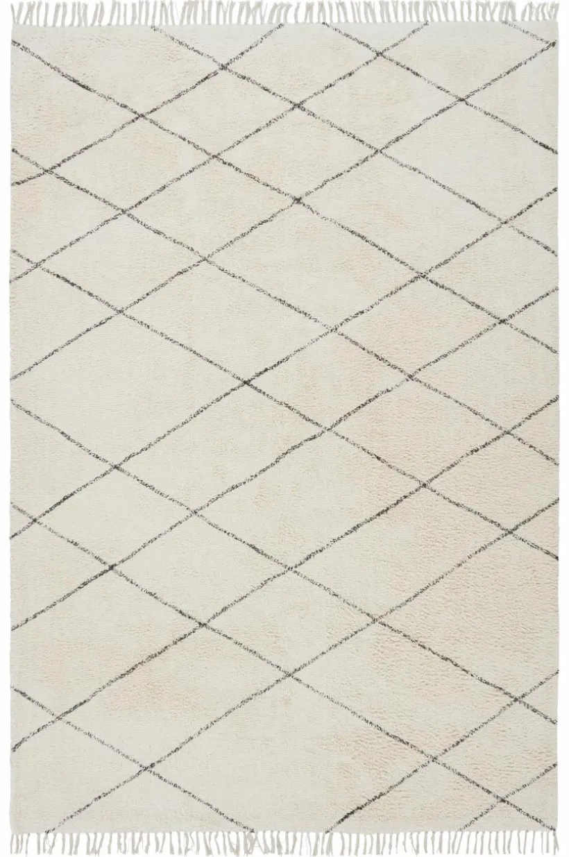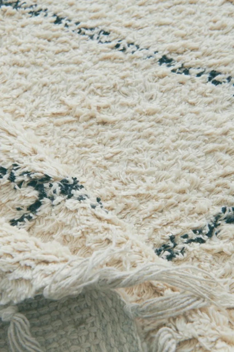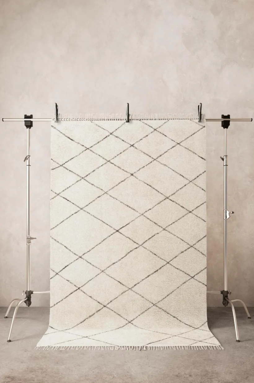 Tuftad matta av bomull med ett stilrent, oregelbundet rutmönster och fransar längs kortsidorna. En klassisk bomullsmatta som passar lika fint i köket som i barnkammaren, hallen eller tvättstugan. Med LESS får rummet en ny utstrålning. Franslängd 7 cm, 1500 g/m².