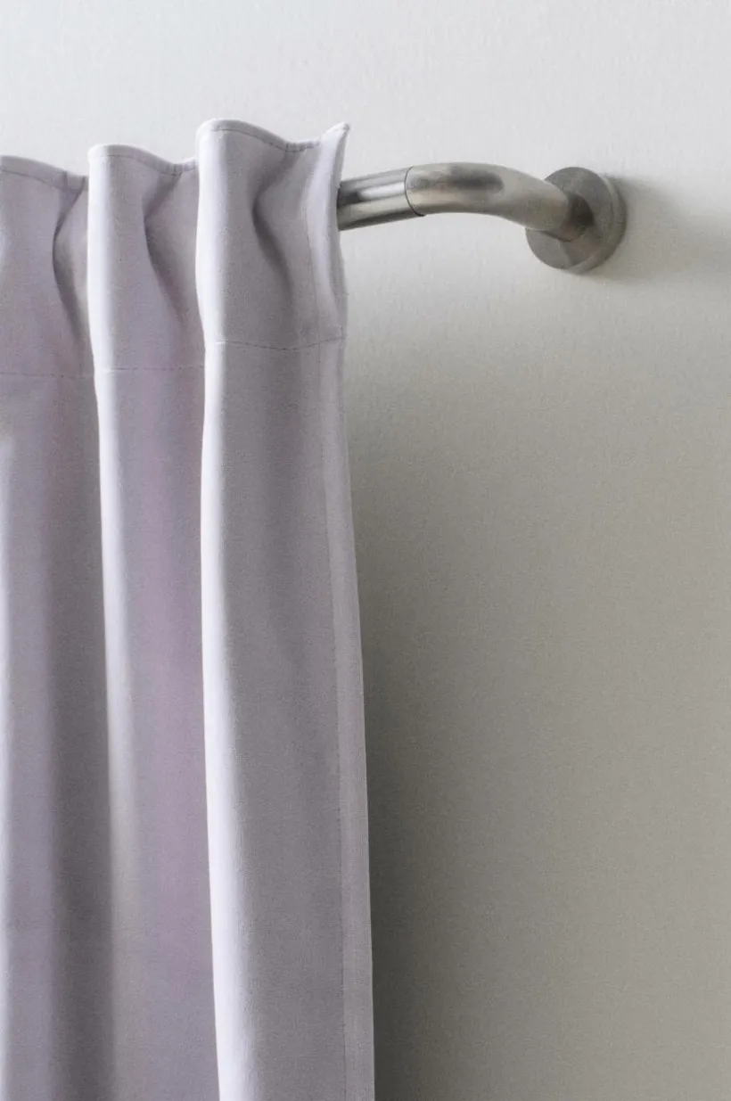 Gardinstång av rostfritt stål. Gardinstången har rundade hörn och fäster mot väggen. Gardinstången har således inga ändknoppar utan gardninen får ett mjukt avslut in mot väggen. LIANA passar därför extra bra tillsammans med mörkläggningsgardiner då ljuset stängs ute även vid sidorna. Gardinstången har justerbar längd. 2 väggfästen, ett mittenfäste och L-nyckel ingår. Mittenfästet måste sättas upp för att hålla stången stabilt på plats.