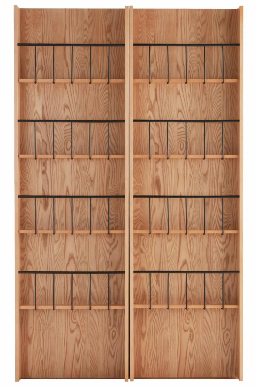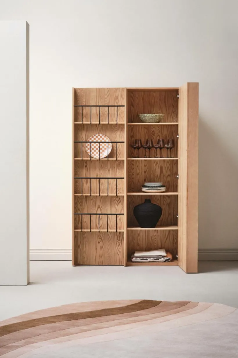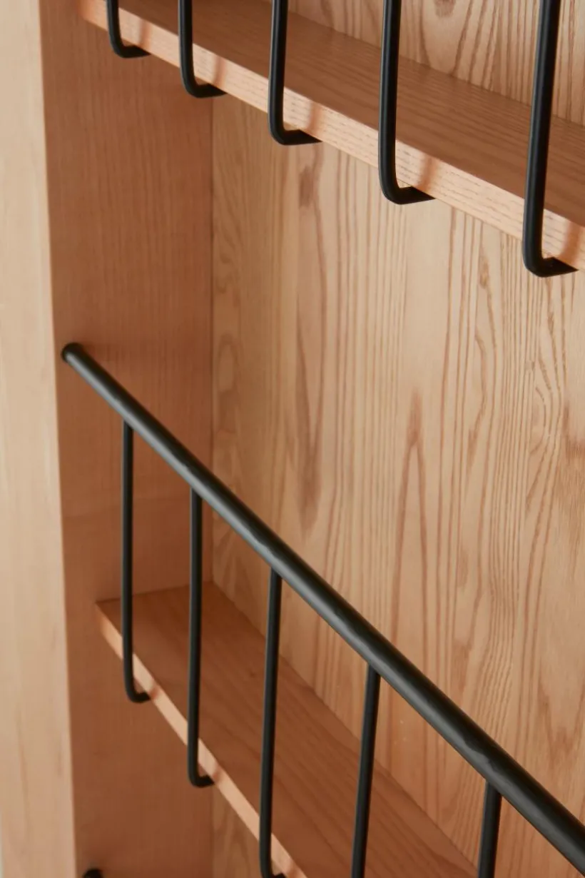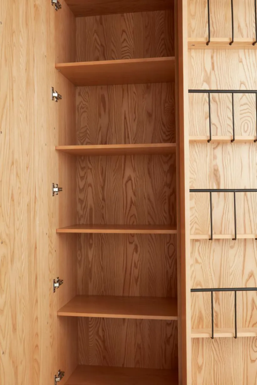 LILJEMOLN är ett stort och pampigt skåp av MDF med askfaner. Dubbeldörrarna har utanpåliggande förvaringshyllor med hyllkant av järn, här exponerar du allt från olivoljan i snygg flaska till förvaringsburkar med specerier. Dörrarna har mjukstängande gångjärn. Invändigt är skåpet delat i två delar, en del bakom vardera dörren och dessa har fyra fasta hyllplan vardera. Skåpet har ytbehandlats med vattenbaserad lack. Skåpet har väggfäste på baksidan. Viss montering krävs. Monteringsanvisning medföljer.