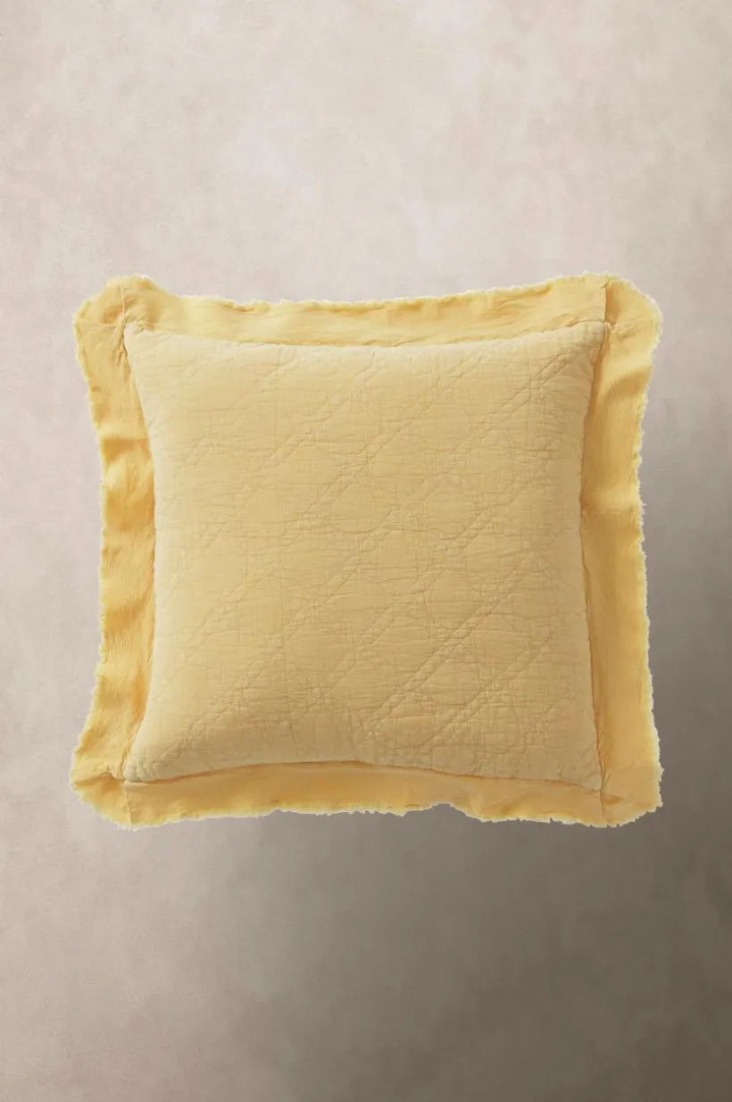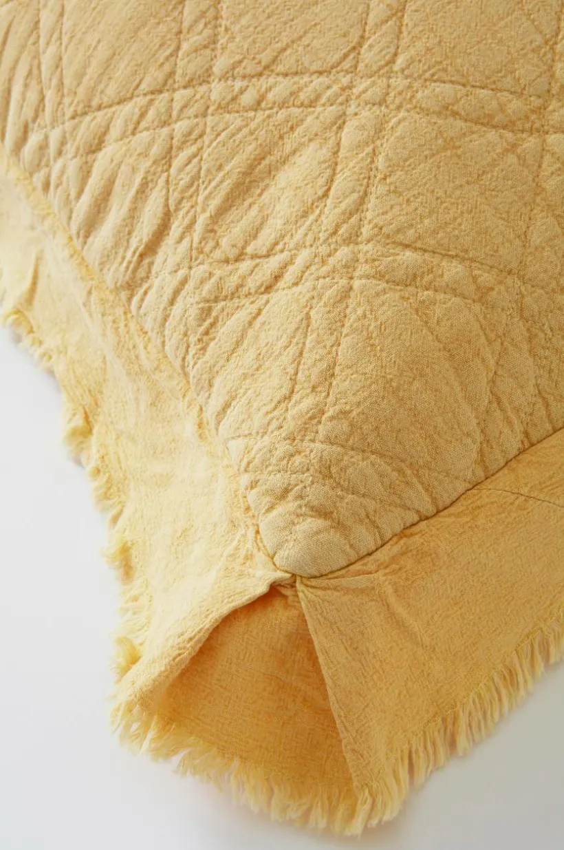 1-pack kuddfodral med framsida i skön, plaggtvättad linnemix som har quiltat mönster med små fyrkanter på diagonalen. Den naturliga och mjuka känsla kommer när det behagliga tyget tvättats före sömnad. En rå franskant runt om förstärker känslan av mjukt och mysigt. Kuddfodralet har smidig och lagom tjock fyllning. Dragkedja i nederkant.