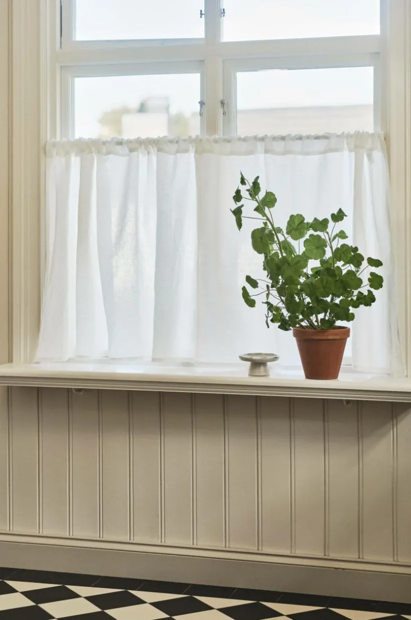 Café-gardinen LINA ger rustik elegans till ditt fönster med sin fina blandning av linne och bomull. Den släta väven förstärker dess naturliga skönhet och ger en mjuk och smidig textur. Med tiden fördjupas linnevävens karaktär. Dess rika färgpalett kompletterar olika inredningsstilar, vilket gör det till ett mångsidigt val. Lägg till en touch av tidlös stil i din heminredning.