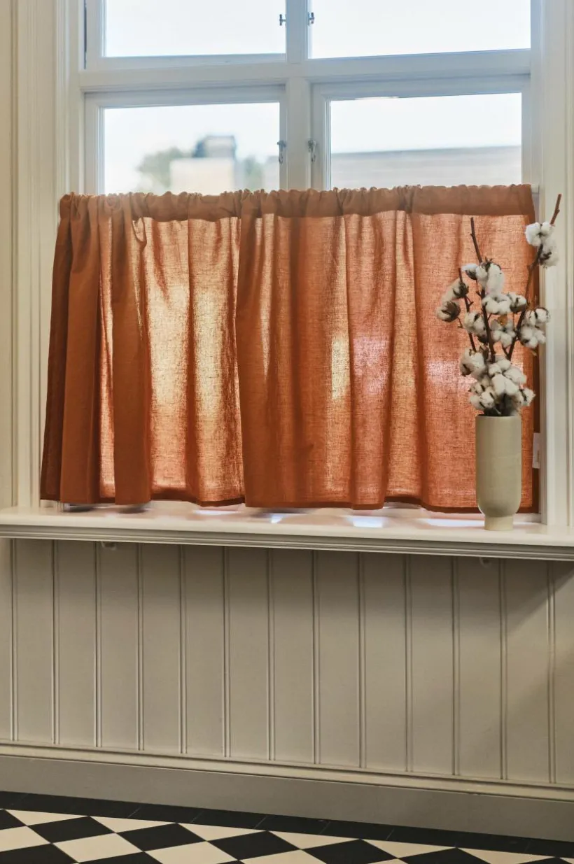 Café-gardinen LINA ger rustik elegans till ditt fönster med sin fina blandning av linne och bomull. Den släta väven förstärker dess naturliga skönhet och ger en mjuk och smidig textur. Med tiden fördjupas linnevävens karaktär. Dess rika färgpalett kompletterar olika inredningsstilar, vilket gör det till ett mångsidigt val. Lägg till en touch av tidlös stil i din heminredning.