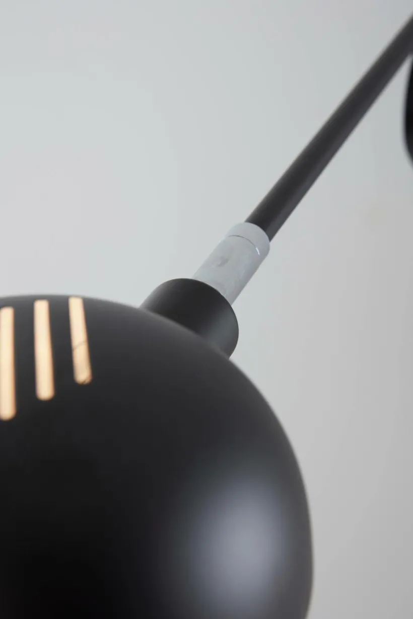 Storlek: Lampans djup 80 cm, skärm ø 13,5 cm, skärmhöjd 8 cm. Väggfäste höjd 21 cm, djup 27 cm.