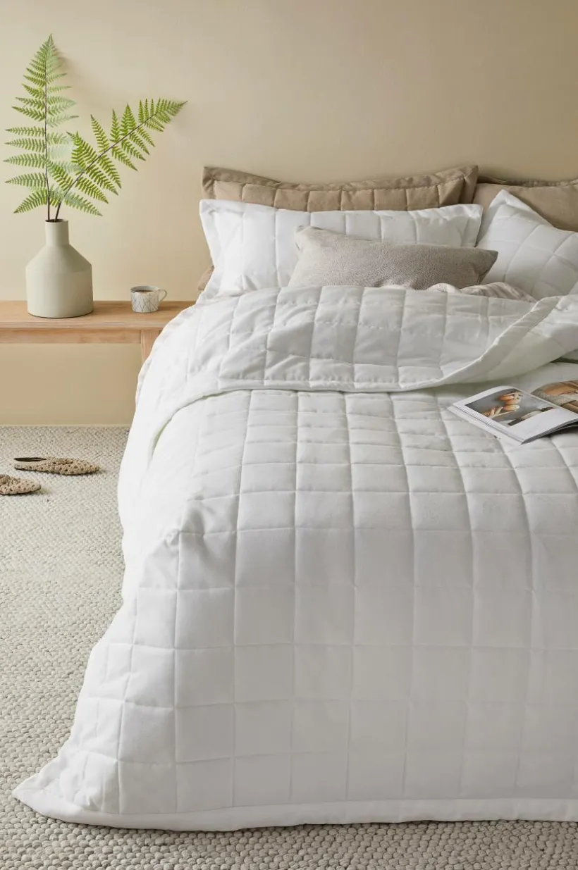 Enfärgat överkast för dubbelsäng i mjuk polyester med fin struktur som ger en härlig linnekänsla. LINDEN överkast är quiltat i dekorativa fyrkanter. Fyllning av polyester 80 g/m².