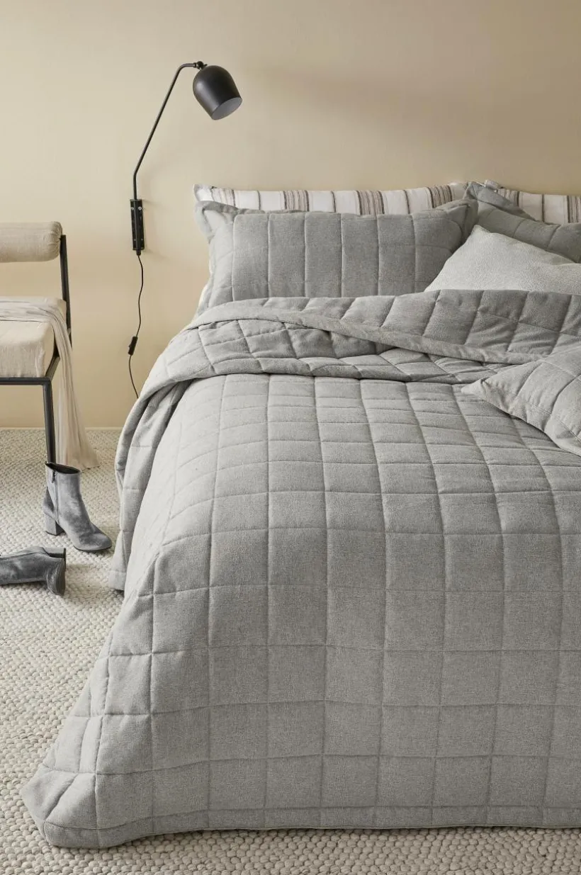 Enfärgat överkast för dubbelsäng i mjuk polyester med fin struktur som ger en härlig linnekänsla. LINDEN överkast är quiltat i dekorativa fyrkanter. Fyllning av polyester 80 g/m².