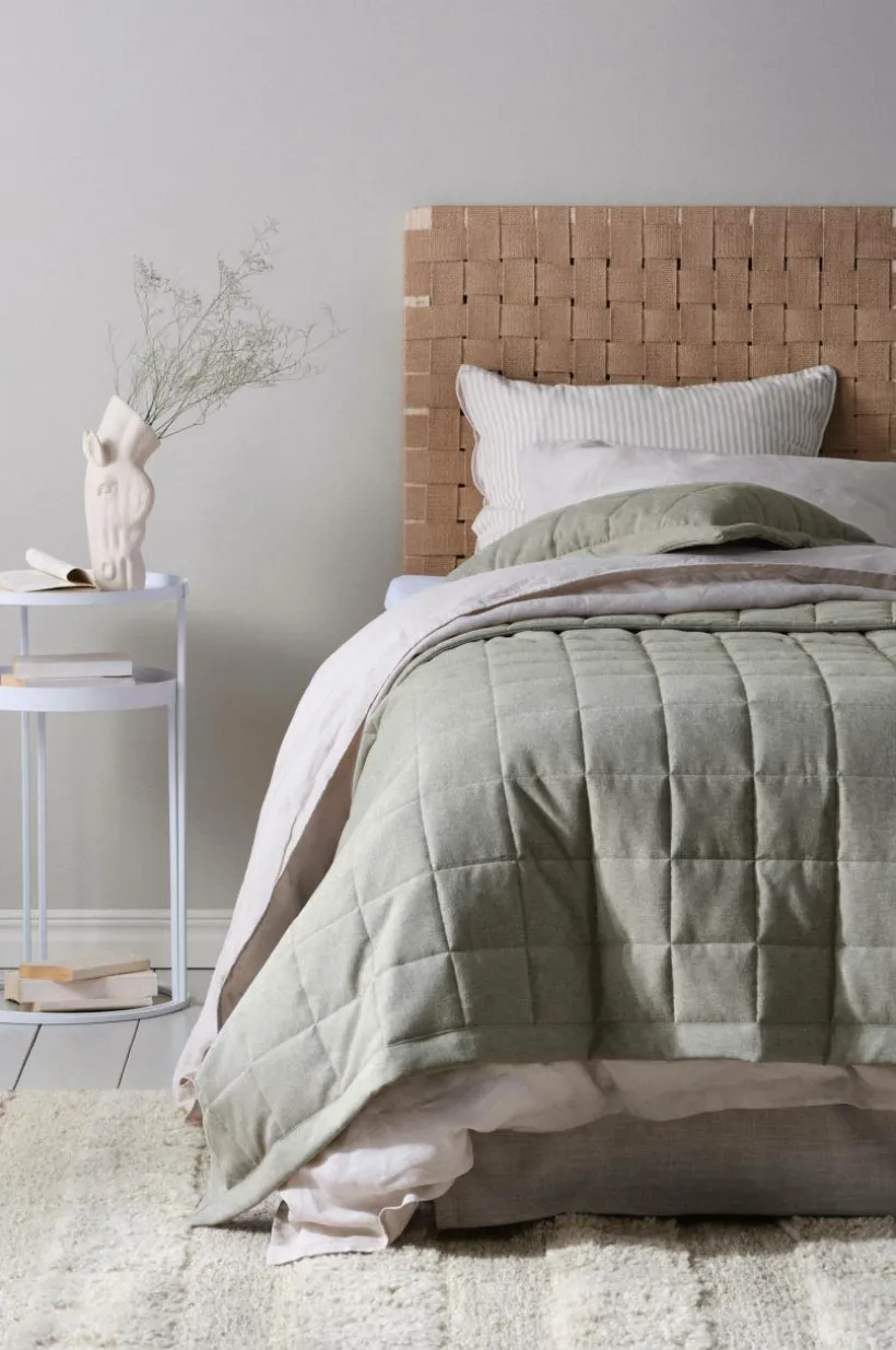 Enfärgat överkast för enkelsäng i mjuk polyester med fin struktur som ger en härlig linnekänsla. LINDEN överkast är quiltat i dekorativa fyrkanter. Fyllning av polyester 80 g/m².