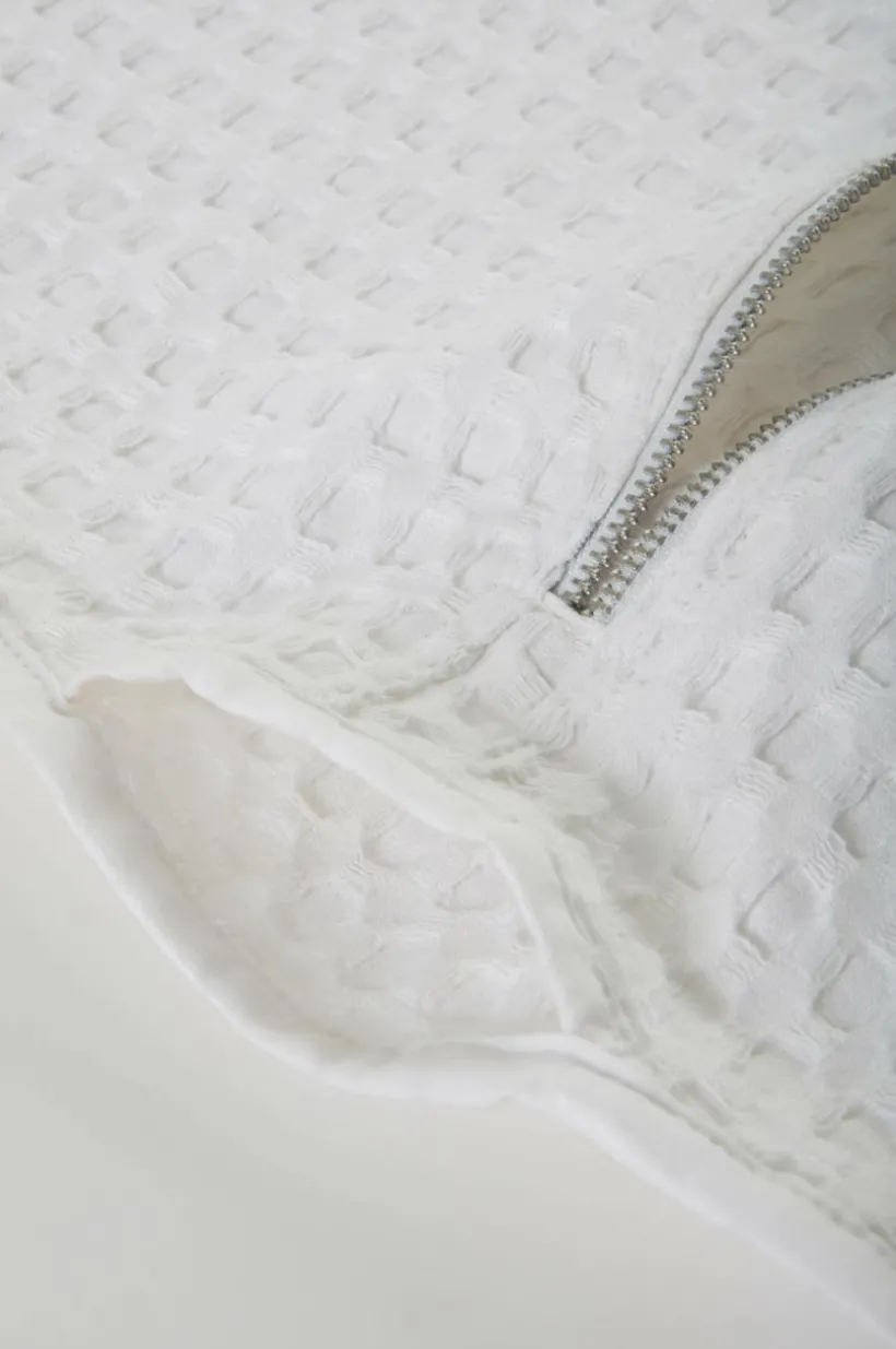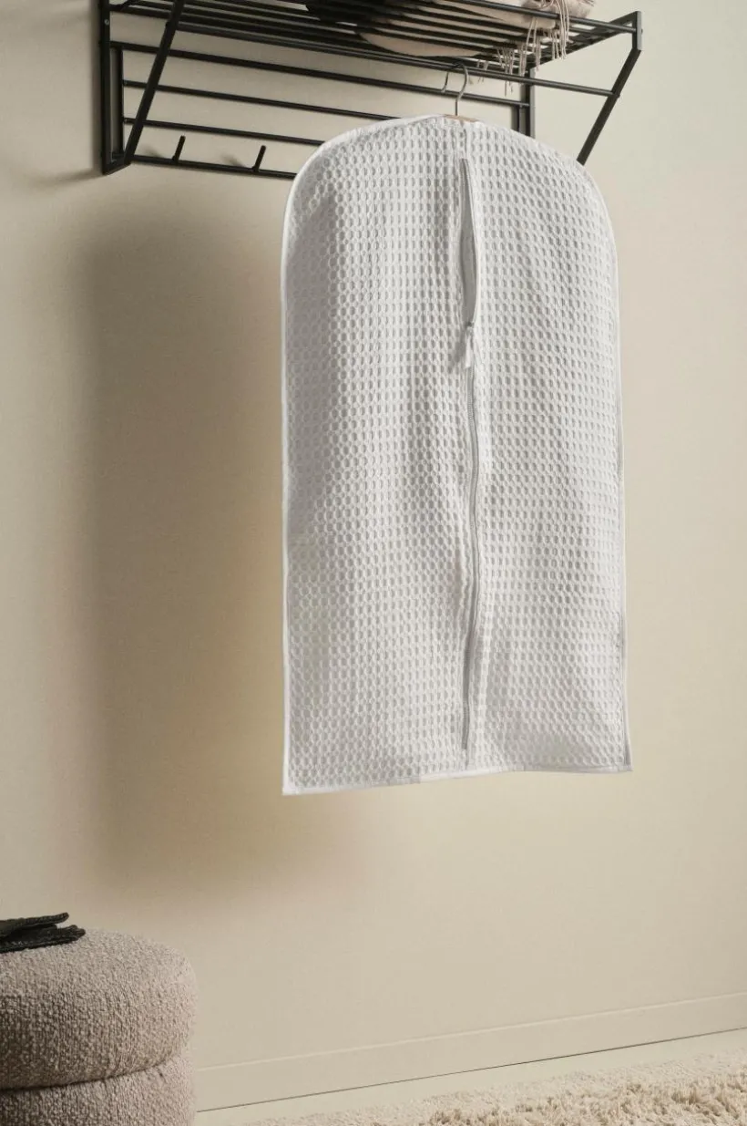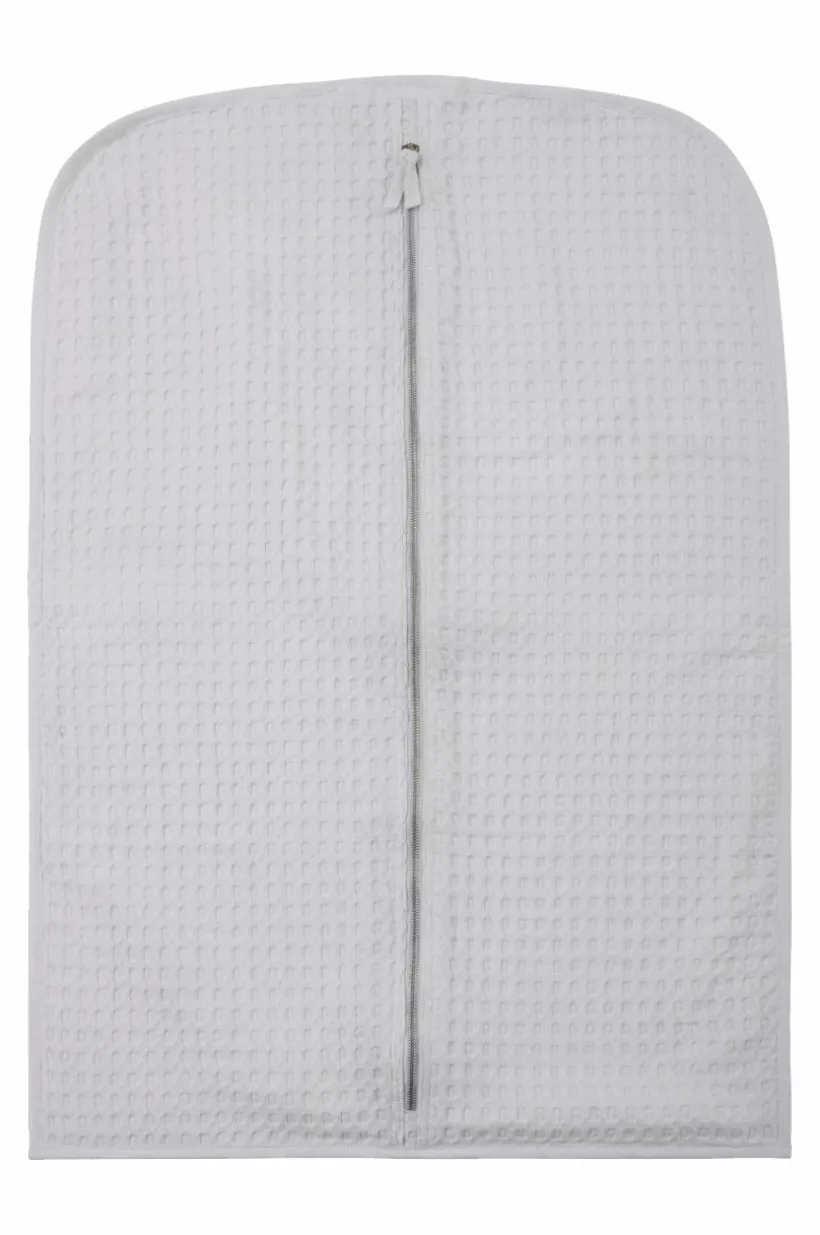 Resegarderob av bomull med vävd våffelstruktur. Resegarderoben har metalldragkedja fram och öppning upptill där du trär igenom galgen som du hängt till exempel kavajen eller blusen på och sedan hänger du det skyddat på klädstången eller i bilen. Resegarderoben är mycket användbar och skyddar dina kläder på resan och även hemma.