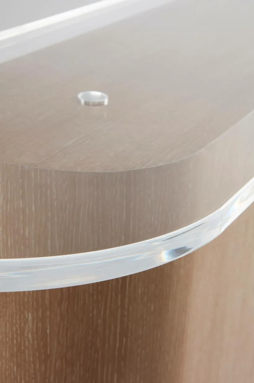Sideboard av MDF med bordsskiva av akrylglas. Den nedre delen är mjukt oval och har klätts med faner. Bordsskivan är också den oval och av akrylglas. LIVI har enkel och ren form med mjuk framtoning och retrokänsla. Det är ett sideboard med flexibel användning och passar fint i vardagsrummet, eller varför inte i hallen eller sovrummet? Viss montering krävs. Monteringsanvisning medföljer.
