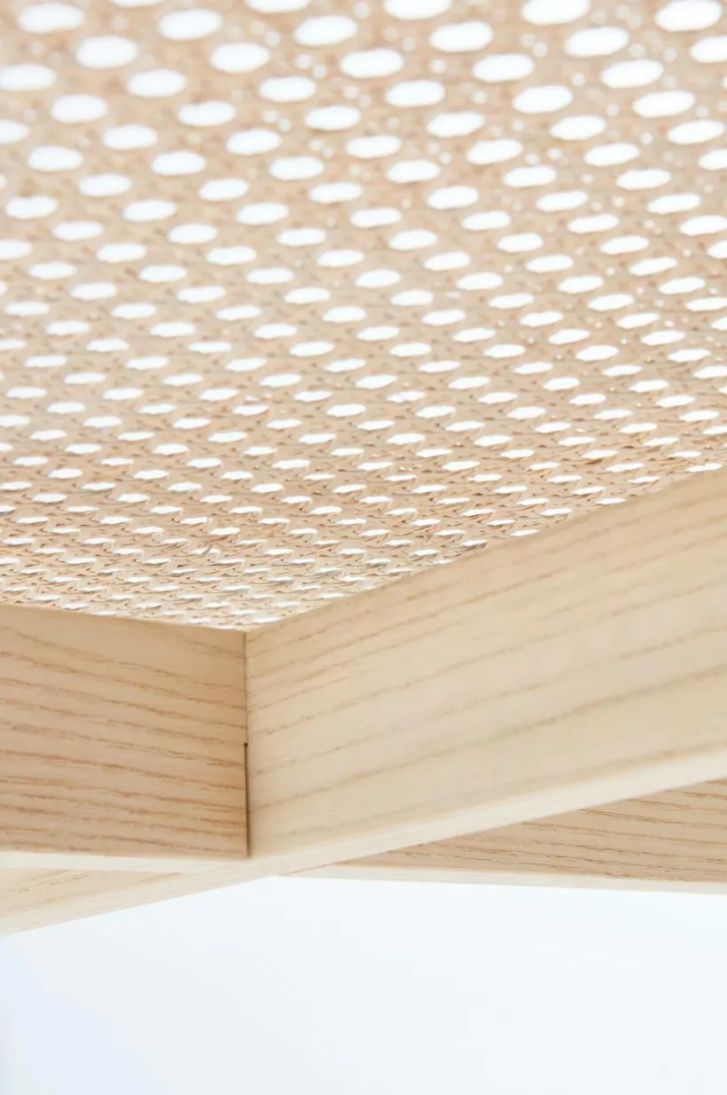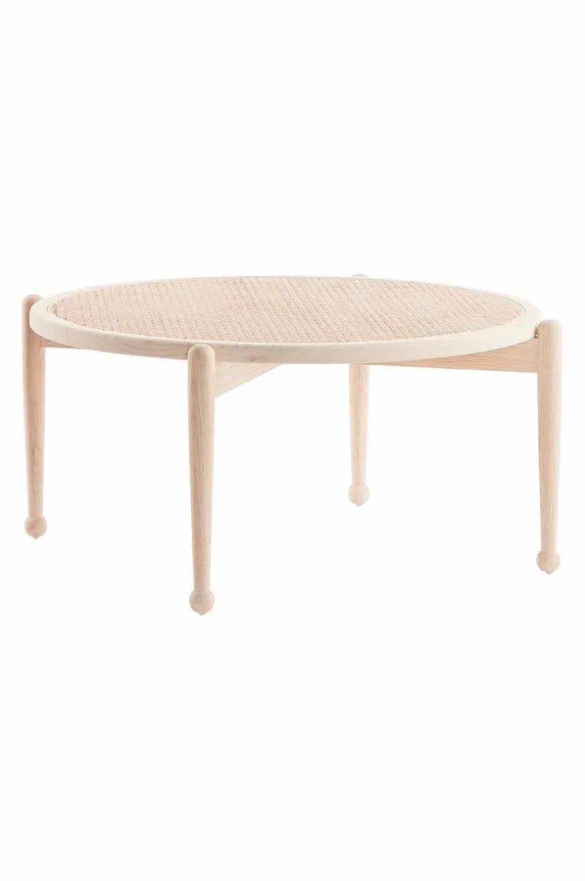 Rottingmöblerna har hamnat i rampljuset igen. LJUNGHUSEN är ett runt soffbord med bordsskiva av rotting. Ramen runt bordsskivan och benen är av ljust almträ eller svartmålad björk.