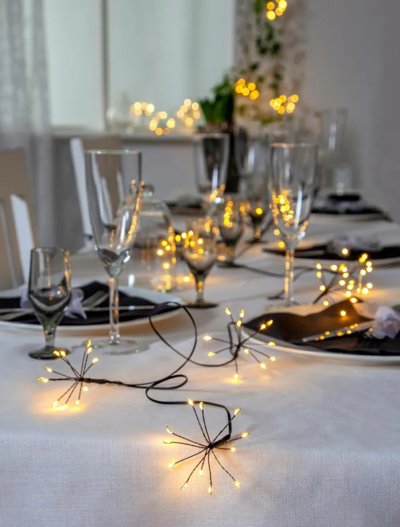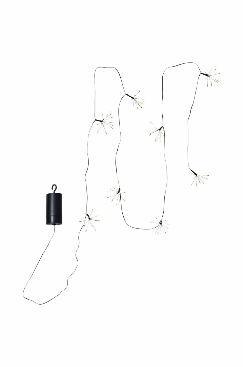Vacker batteridriven ljusslinga med 96 LED dew drops fördelade på 8 blommor. Kan användas vid diverse dekorationer, vid tex dukningar, blomsterarrangemang, julgranen och mycket mer. Batteriboxen är gjord för att klara utomhusbruk. Slingan har timerfunktion. Längd 210 cm. Drivs med 4 batterier AA (ingår ej). Timer: 6 h på, 18 h av, repeterande. Lampans spänning 3V. Volt 6V.