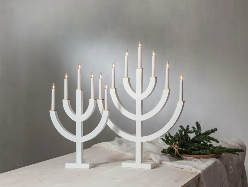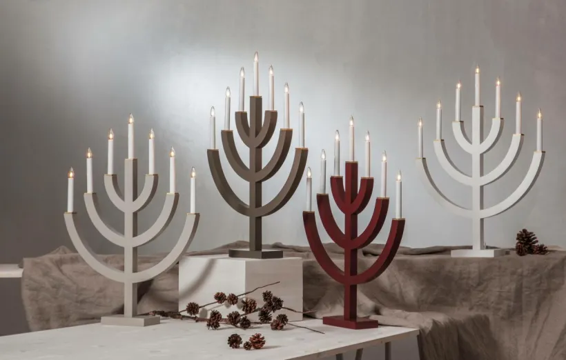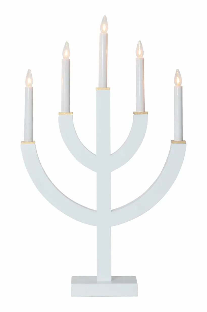 Stämningsfull adventsljusstake tillverkad i trä med målade träbrickor som dekoration. Ljusstaken är både moderna och traditionell och passar utmärkt i ett fönster eller på en skänk. Julen blir något alldeles extra med stämningsfulla Anno som dekoration. Total effekt 15 W. Ljuskällans effekt 3 W.