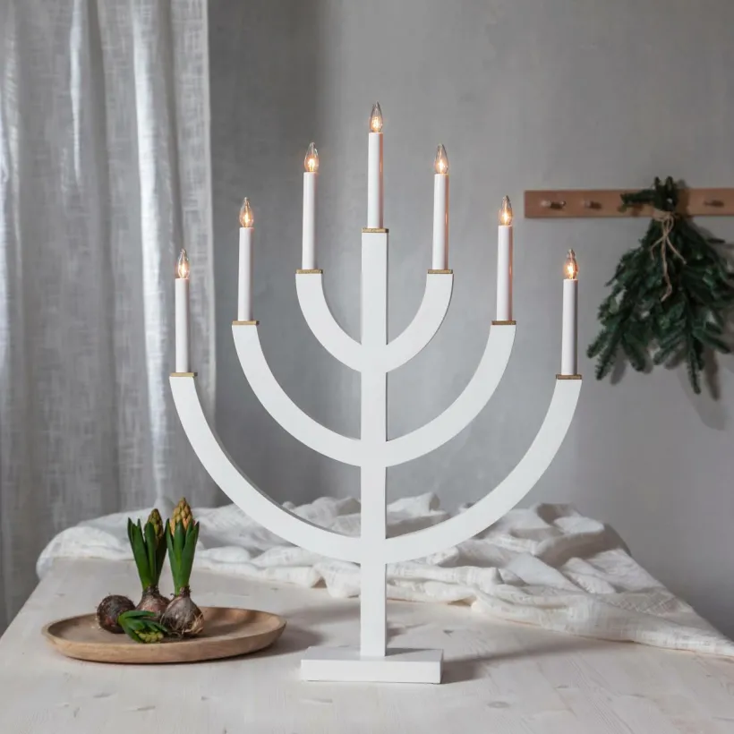 Stämningsfull adventsljusstake tillverkad i trä med målade träbrickor som dekoration. Ljusstaken är både moderna och traditionell och passar utmärkt i ett fönster eller på en skänk. Julen blir något alldeles extra med stämningsfulla Anno som dekoration. Total effekt 21 W. Ljuskällans effekt 3 W.