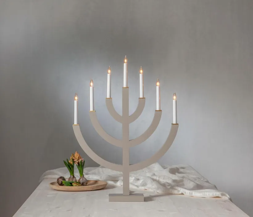 Stämningsfull adventsljusstake tillverkad i trä med målade träbrickor som dekoration. Ljusstaken är både moderna och traditionell och passar utmärkt i ett fönster eller på en skänk. Julen blir något alldeles extra med stämningsfulla Anno som dekoration. Total effekt 21 W. Ljuskällans effekt 3 W.