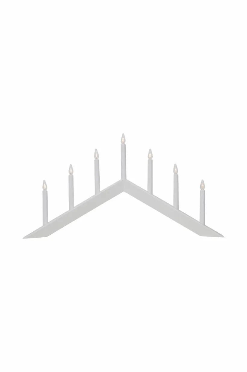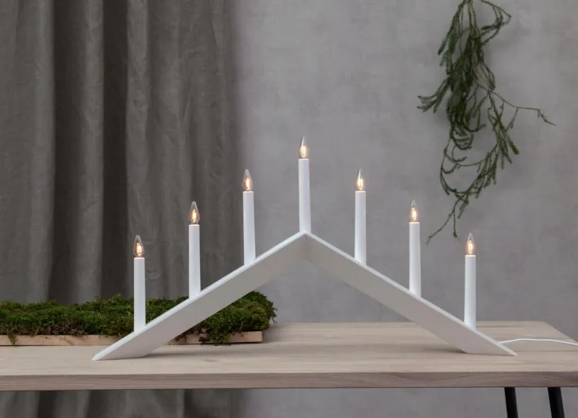 Stilren träljusstake med en häftig form. Levereras tillsammans med fina ljuskällor. Höjd 36 cm, bredd 69 cm, djup 7 cm. Sockel E10. Sladdlängd 180 cm.