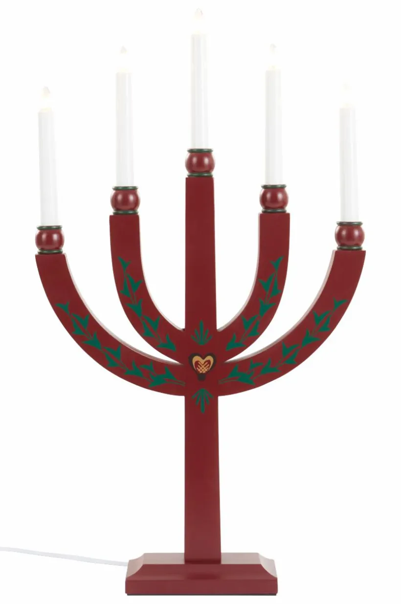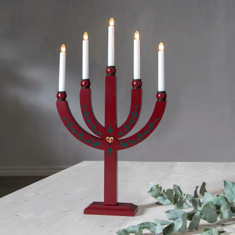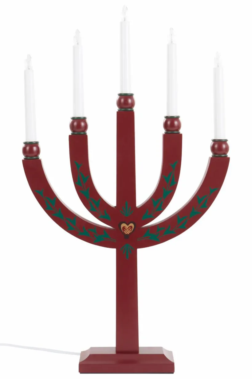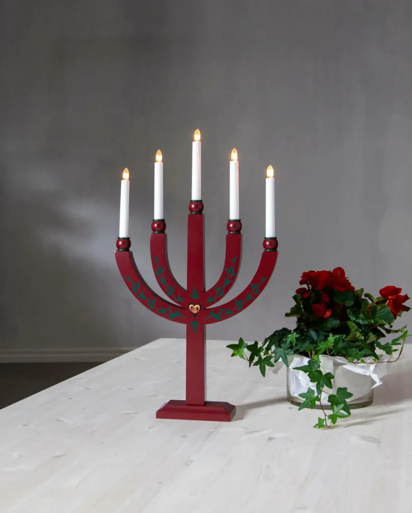 Traditionell träljusstake med fina detaljer. Adventsljusstaken har 5 ljuskällor som ger ljusstaken en mysig belysning och en hemtrevlig julkänsla. Placera i fönstret eller på en skänk.