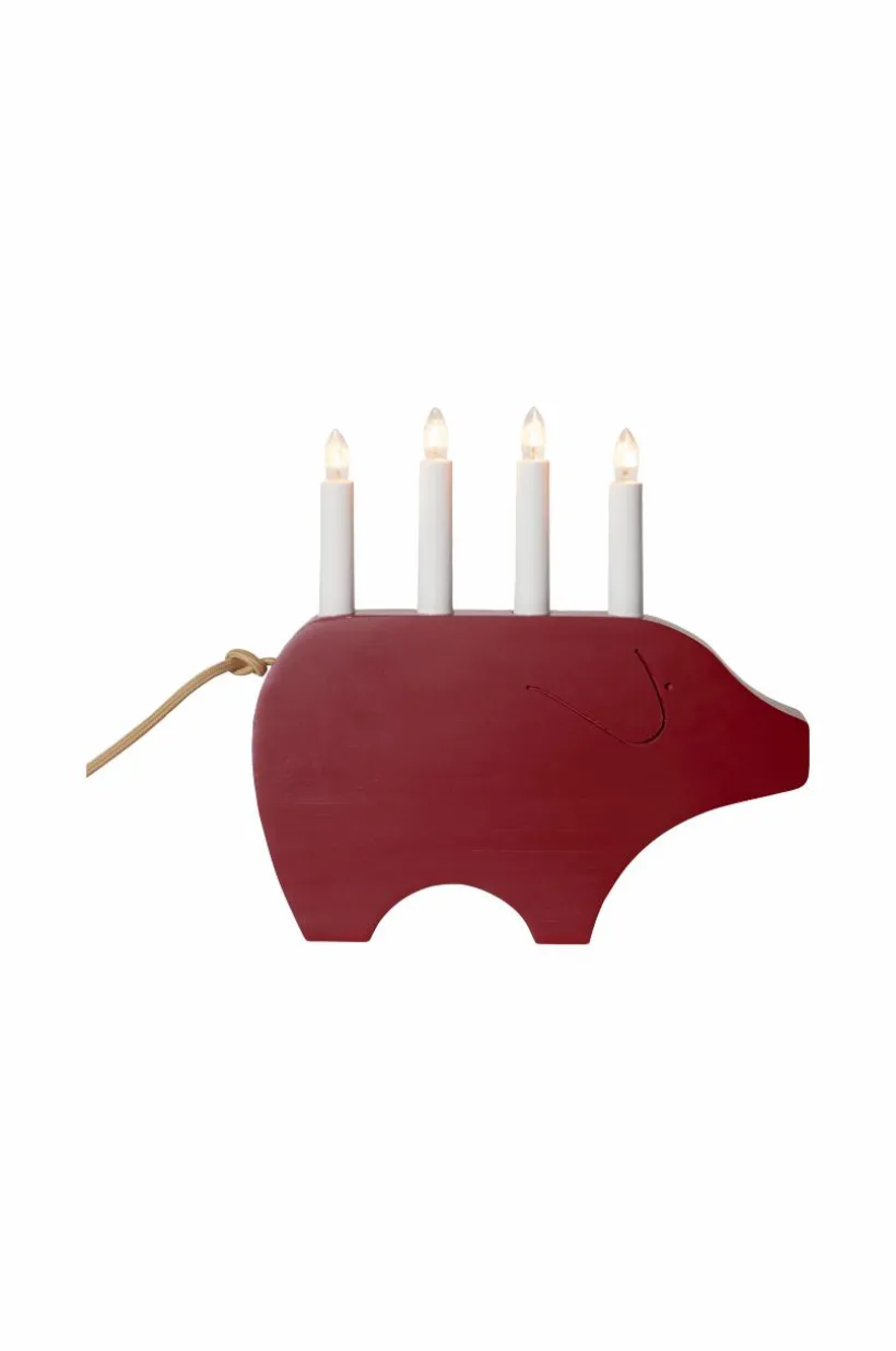 Adventsljusstake i form av en vit julgris, tillverkad i trä. Textilkabel med brytare. Placera den i ett fönster eller och på en skänk. Härlig adventljusstake att dekorera med till jul.