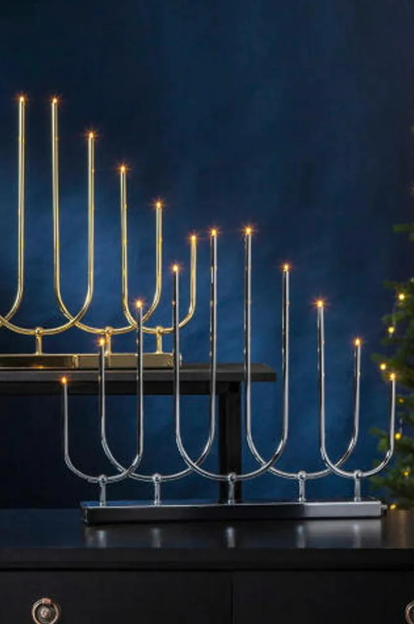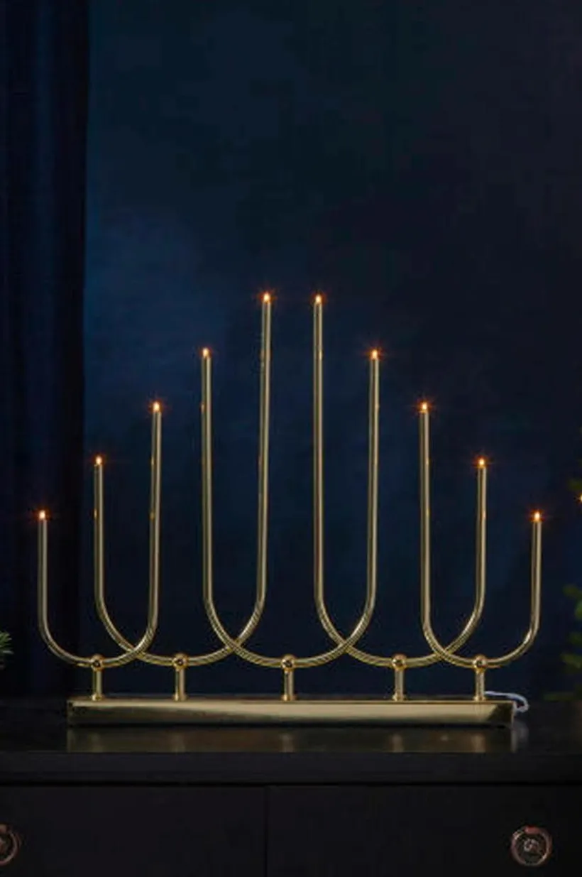 En elegant elljusstake med 10 st E5 ljuskällor som gör att ljusstakens lampor glöder vackert samt sprider en härlig julkänsla. Anslutningskabelns längd: 180 cm, avstånd från produkt till strömbrytare: 30 cm.