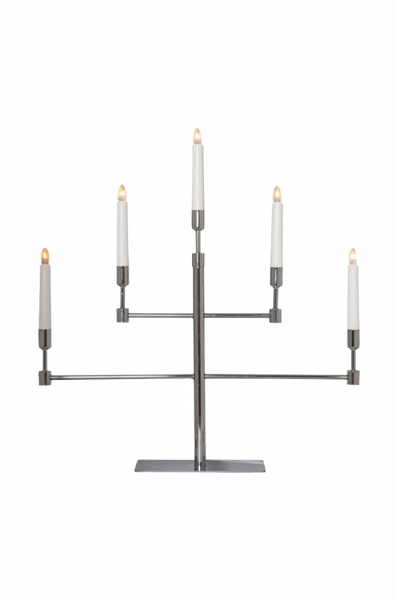 Modern adventsljusstake i mässings färg, tillverkad i metall. Dekorera med till advent och jul, placera den i ett fönster eller på en skänk.