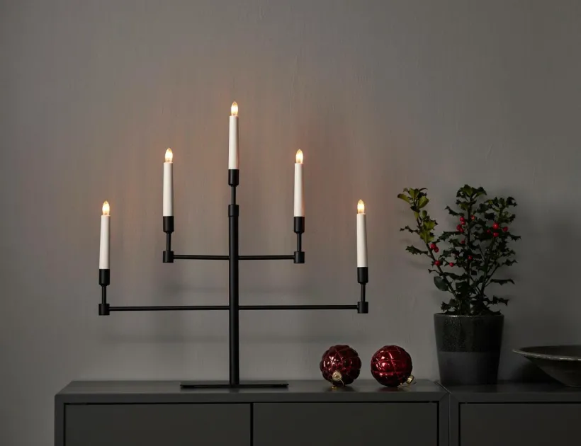 Modern adventsljusstake i mässings färg, tillverkad i metall. Dekorera med till advent och jul, placera den i ett fönster eller på en skänk.