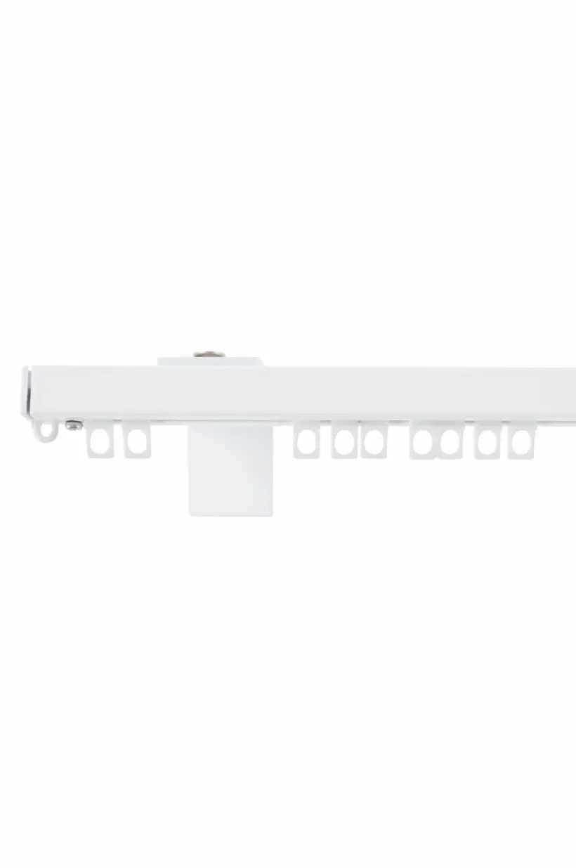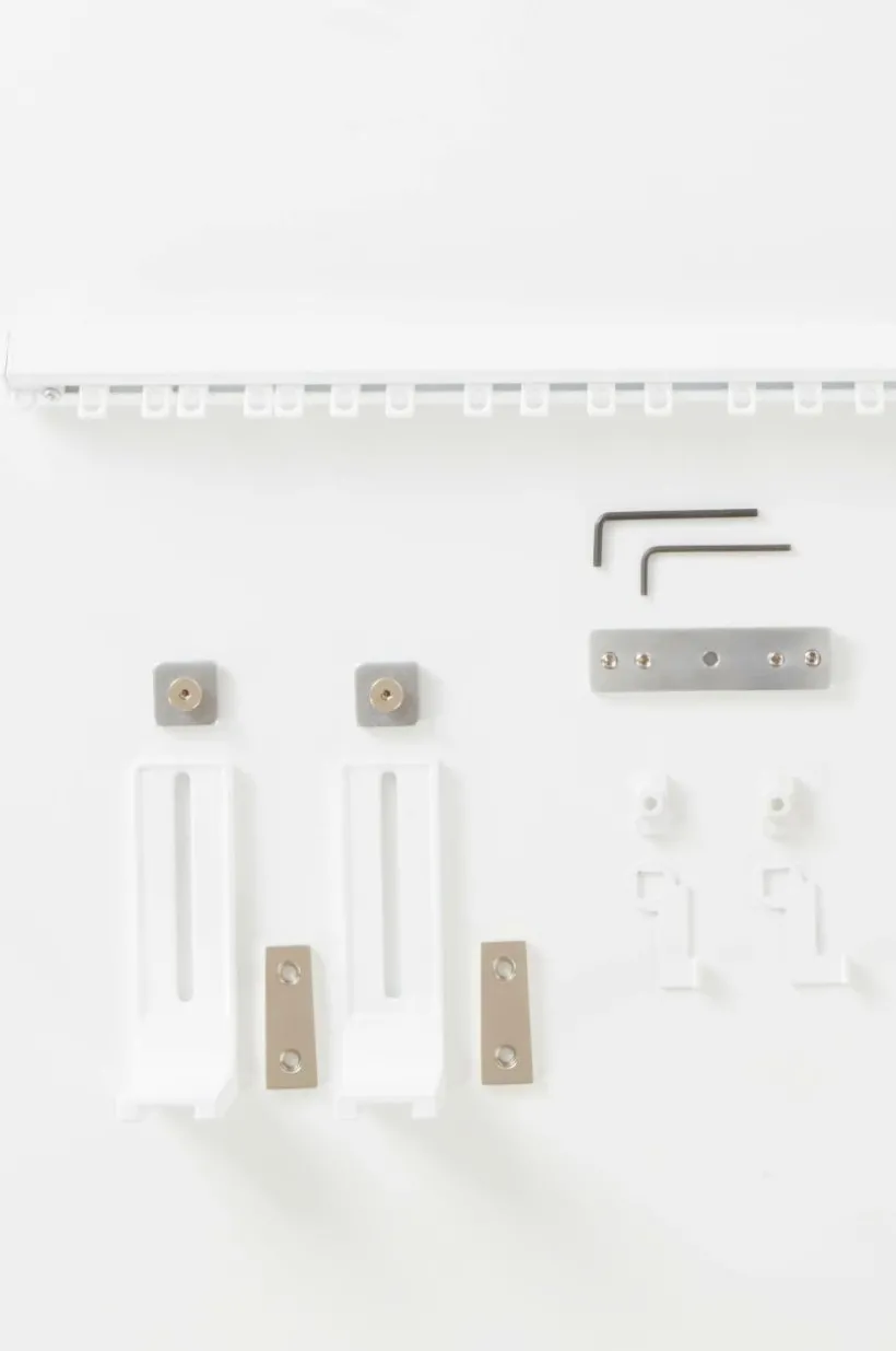 Gardinskena i set med 1 gardinskena, 2 takfästen, 2 väggfästen, 14 glid, 1 skarvdel och L-nyckel. Gardinskenan ger snygga gardinupphängningar på ett enkelt sätt och du får en stilfull hotellkänsla hemma. Flexibel montering med både takfäste och väggfäste som ingår. Setet har gardinskena i aluminium, glid i plast, fästen och skarvdel i järn.