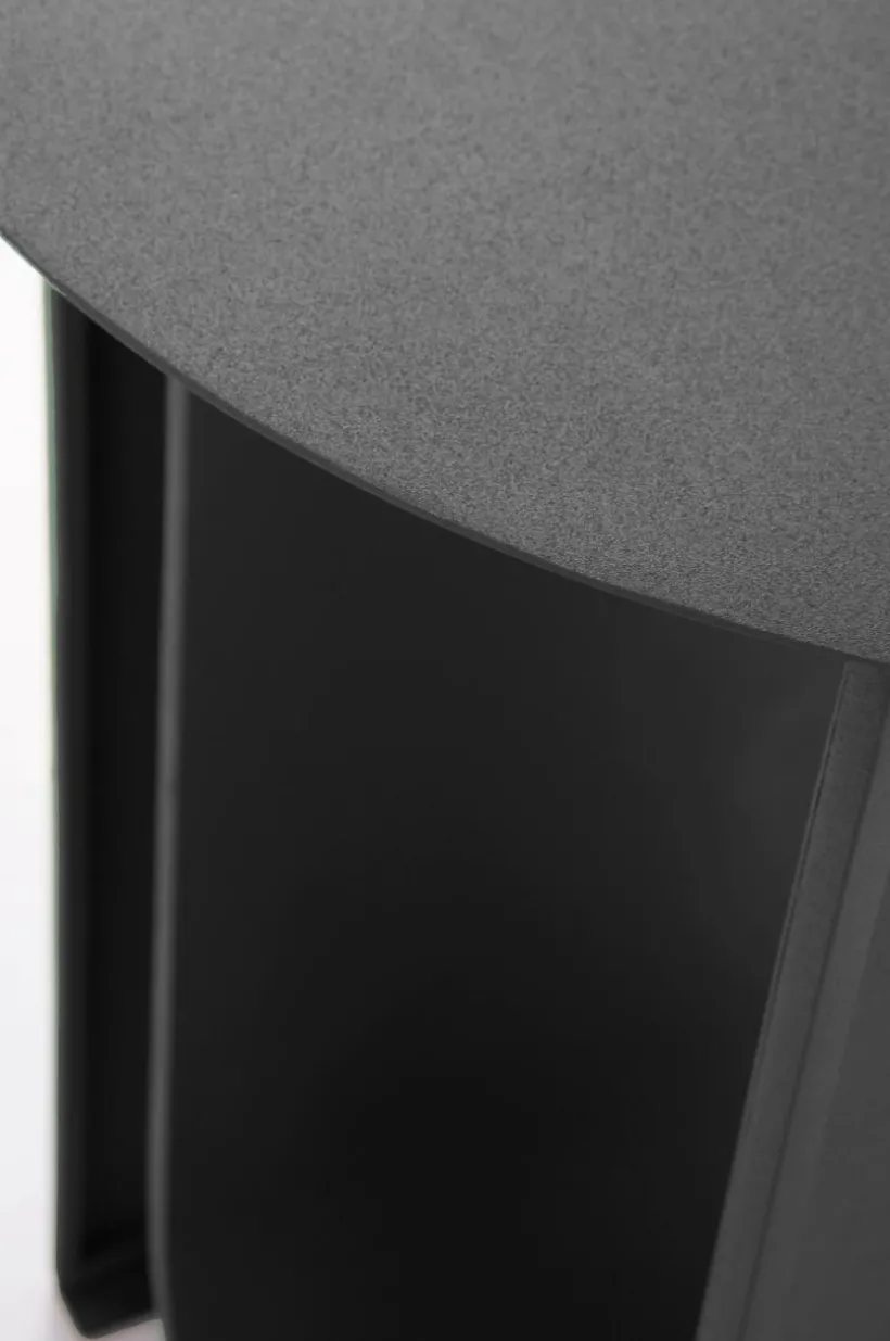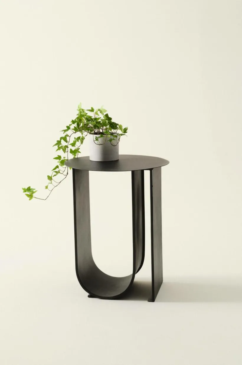 LOSTALLO är ett speciellt sidobord av järn med pulverlackerad yta med lite struktur. Bordet har ett underrede som sticker ut och kommer att få uppmärksamhet där du placerar det.