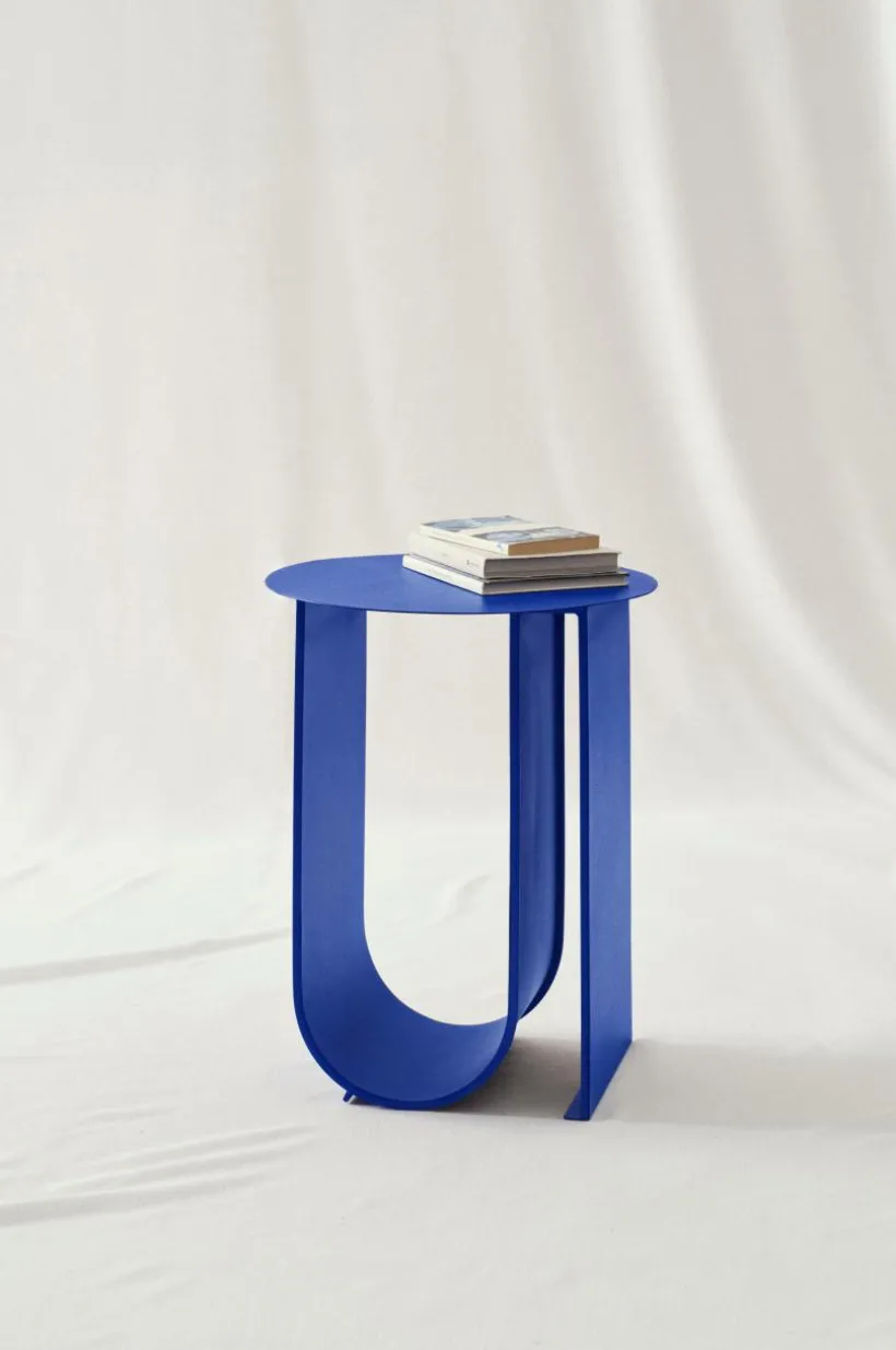 LOSTALLO är ett speciellt sidobord av järn med pulverlackerad yta med lite struktur. Bordet har ett underrede som sticker ut och kommer att få uppmärksamhet där du placerar det.