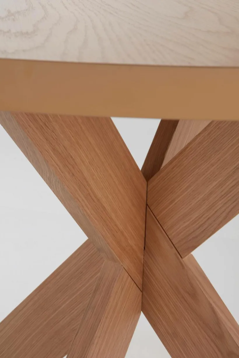 Runt bord av MDF. Det eleganta bordet har fin ekfaner med matt, vattenbaserad lack som ytskikt. Stabilt kryssunderrede är både snyggt och praktiskt, ger rymlig plats för benen. Viss montering krävs. Monteringsanvisningar medföljer.