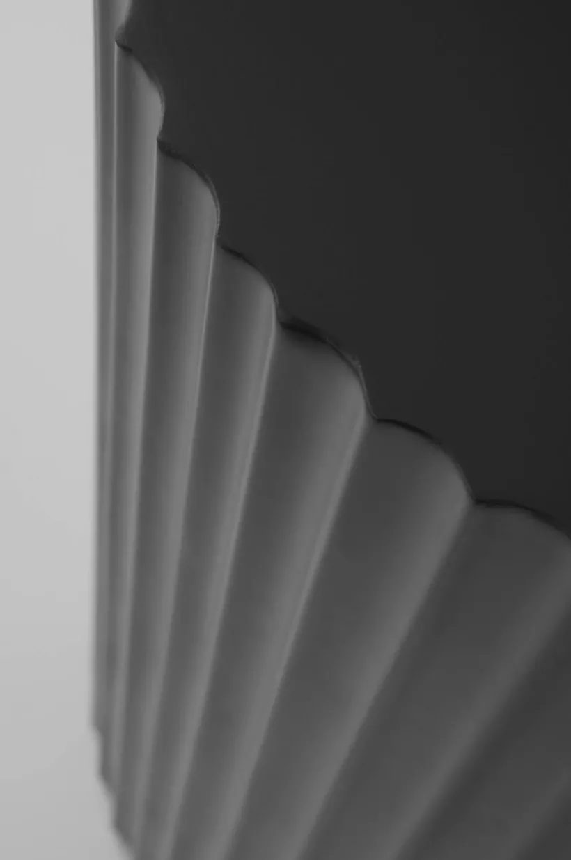 Runt sidobord av FSC-märkt MDF som lackerats med matt färg. Bordsskivan är slät medan sidan är räfflad runt om hela bordet. Bordet är lite lägre och gör sig fint vid soffan eller som sängbord.