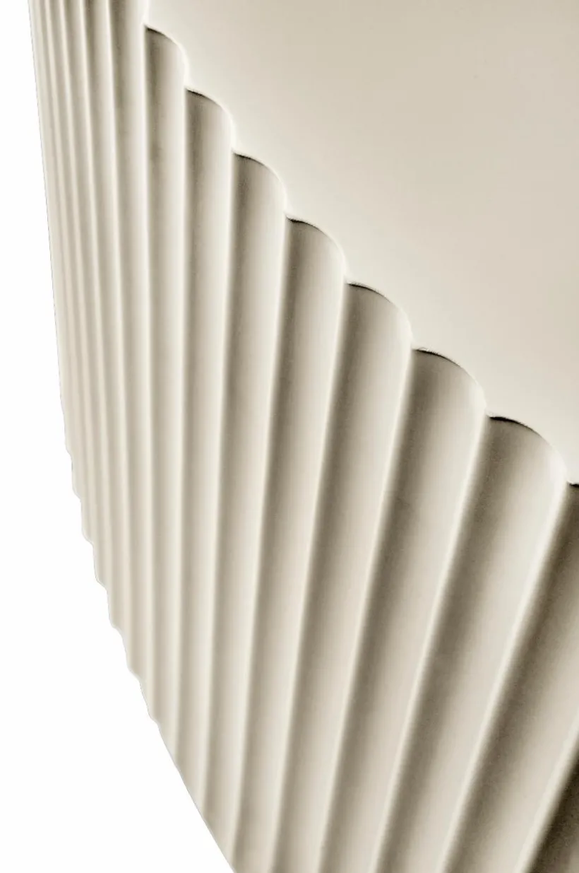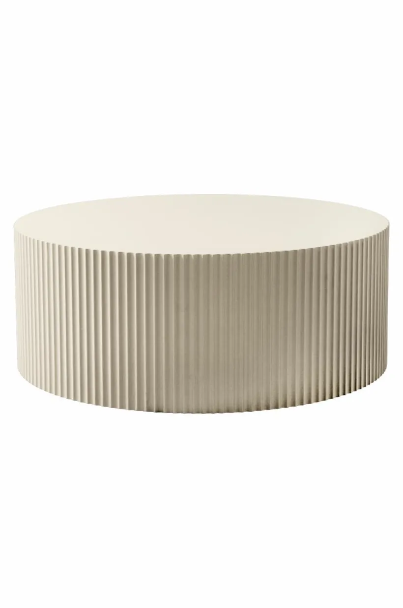 Runt soffbord av FSC-märkt MDF som lackerats med matt färg. Bordsskivan är slät medan sidan är räfflad runt om hela bordet.