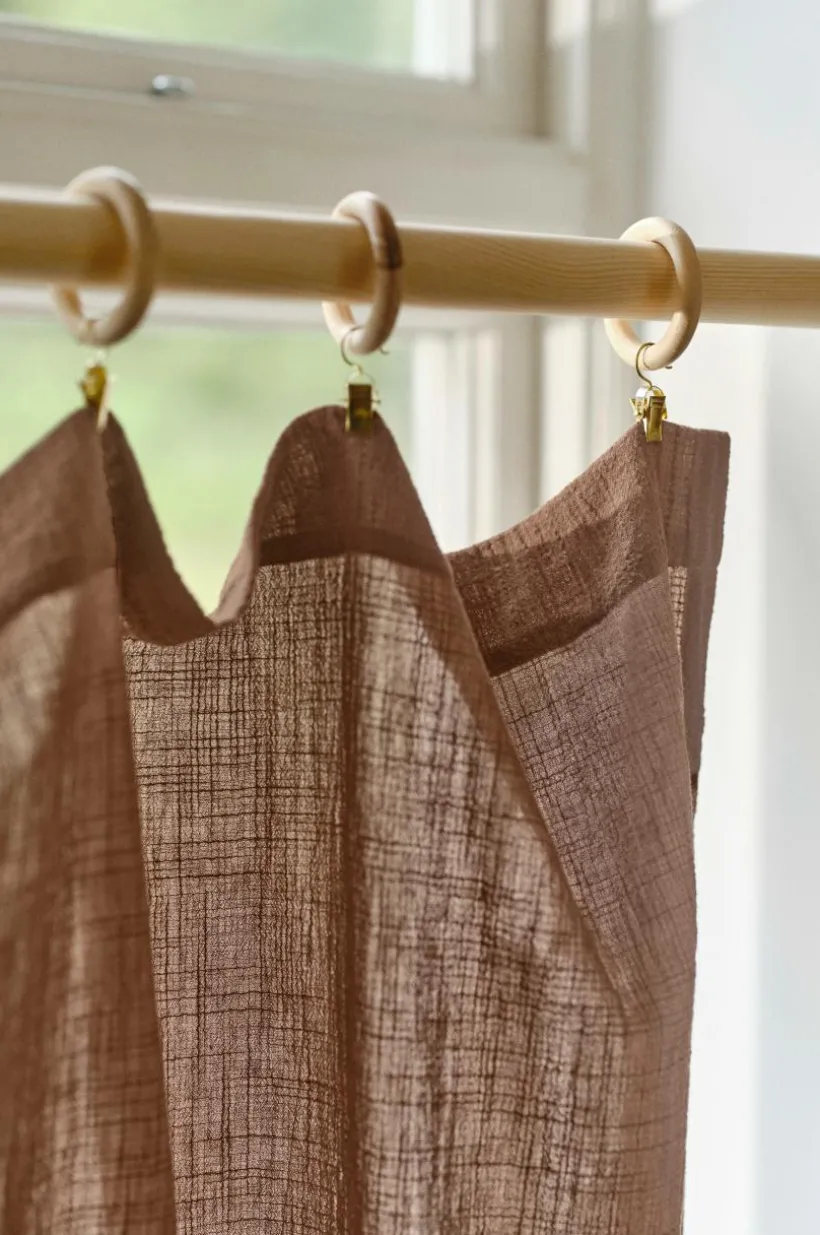 Maskintvätt i 30°C. Krympning max 3 %. Förläng livstiden på gardinerna genom att dammsuga dem försiktigt med mjukt munstycke med jämna mellanrum. På så vis undviker du att damm och smuts tränger in i tyget. Dessutom behåller dina gardiner färgen längre. Fläckar tas bort med varmt vatten på en ljus trasa. Dutta fläcken försiktigt med trasan, steama och låt torka.